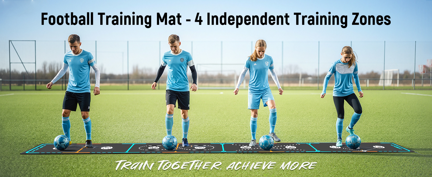 Revolutionary 4-Person Simultaneous Training - Maximize efficiency with the first training mat designed for 4 players at once! Our unique layout allows a full team to practice footwork drills on the integrated agility ladder and marked steps simultaneously—dramatically reducing waiting time and multiplying training output compared to solo mats