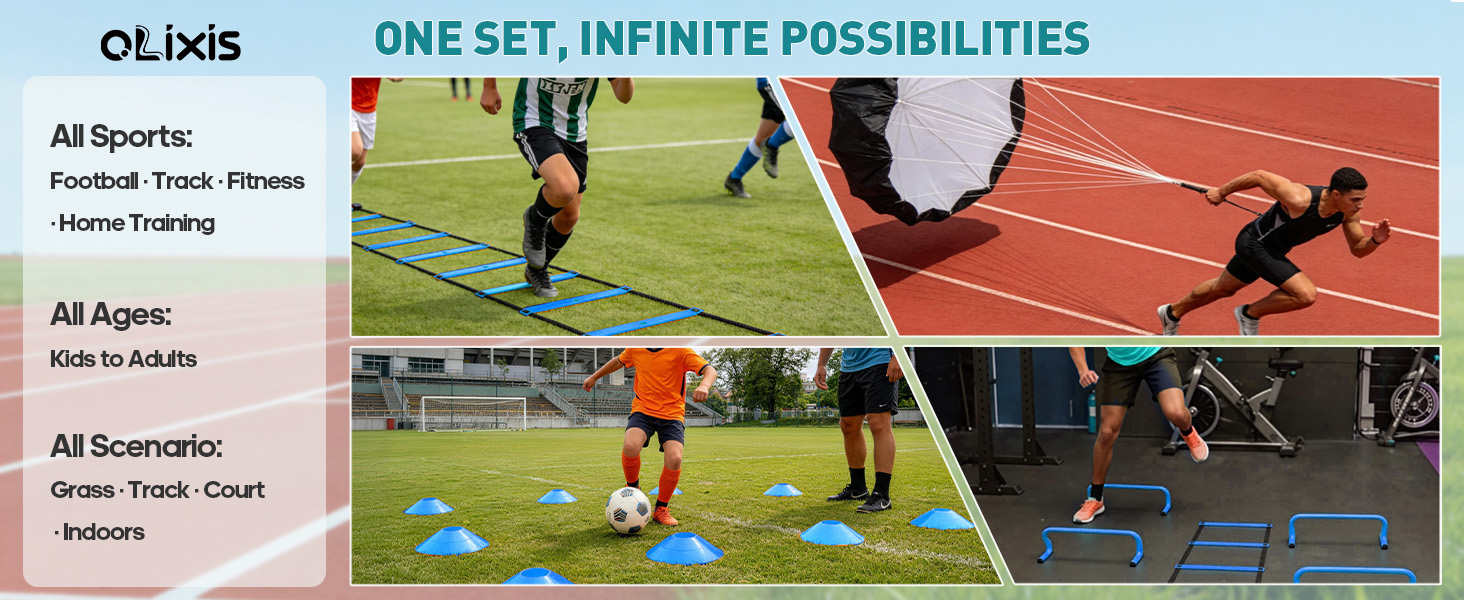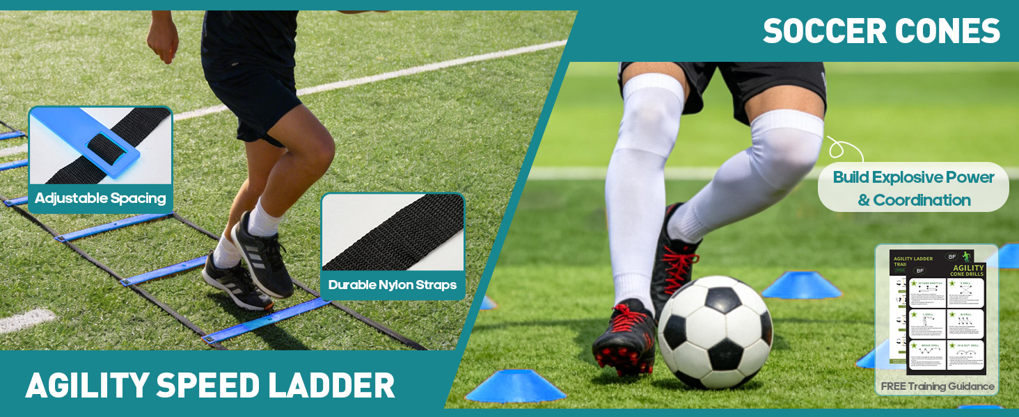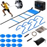 Master Any Sport: This agility training equipment, including a 20ft agility ladder, 12 soccer cones, 4 agility hurdles, jump rope, resistance parachute, transforms any space into a professional training ground for soccer, basketball, athletics and more
