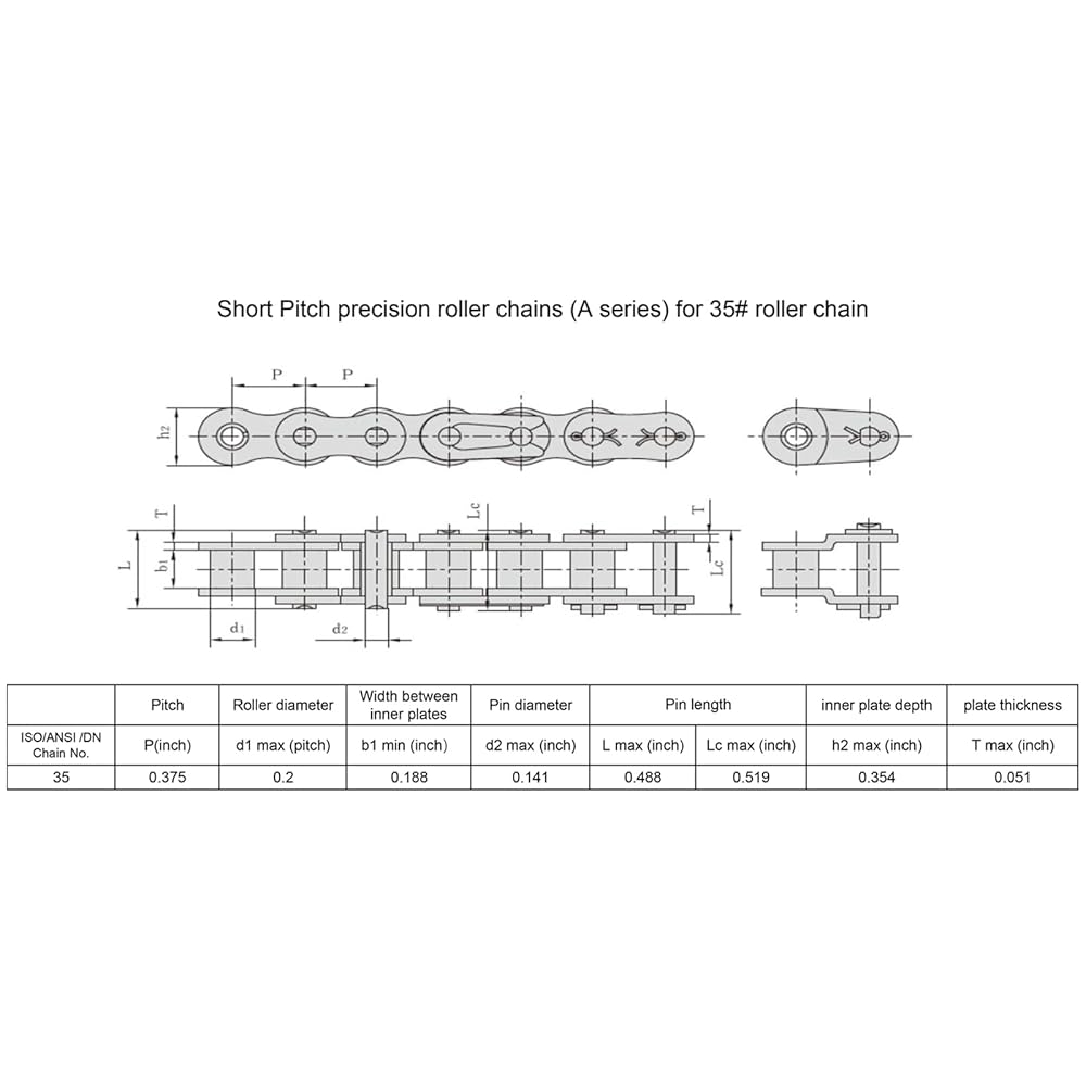 - Size information:American Standard ANSI #35,3/8 inch Pitch,8mm Bore,10 Teeth,None Keyway,2 Setscrews at 90 degrees,B Type,Suitable for #35 chain
