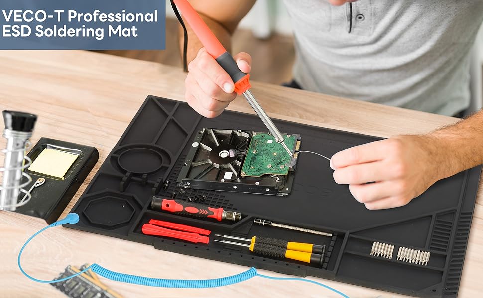 【Practical Design with Measurement Guides & VECO-T Quality Guarantee】 This silicone heat resistant mat is engraved with helpful component measurement guides. It lies flat, resists curling, and is easy to transport. Backed by our VECO-T guarantee, we are confident this will become your most reliable electronics repair mat.