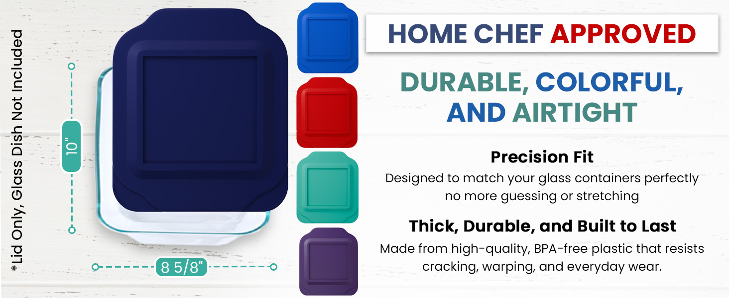 BPA-FREE & FOOD SAFE: MRX Solutions lis are made from durable BPA-free plastic. Microwave safe, freezer safe, and dishwasher safe. Ideal for everyday baking and food storage. Glass dish not included.