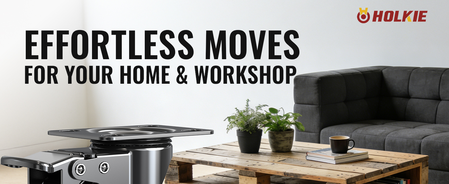 [TOTAL LOCK SAFETY BRAKE] Features a heavy duty Dual Locking mechanism that secures both the swivel plate and the wheel. Keeps your workbench, table, and furniture rock-solid with zero movement—ideal for professional workshops and DIY projects.