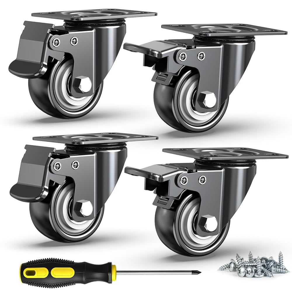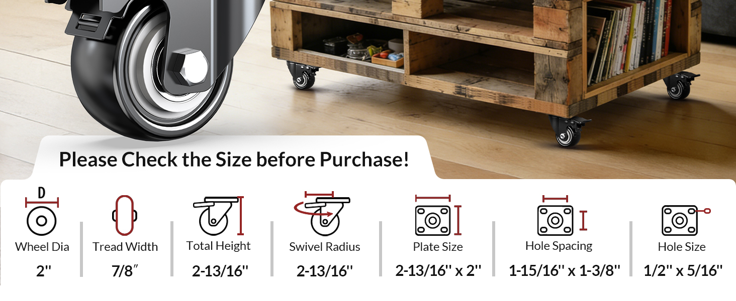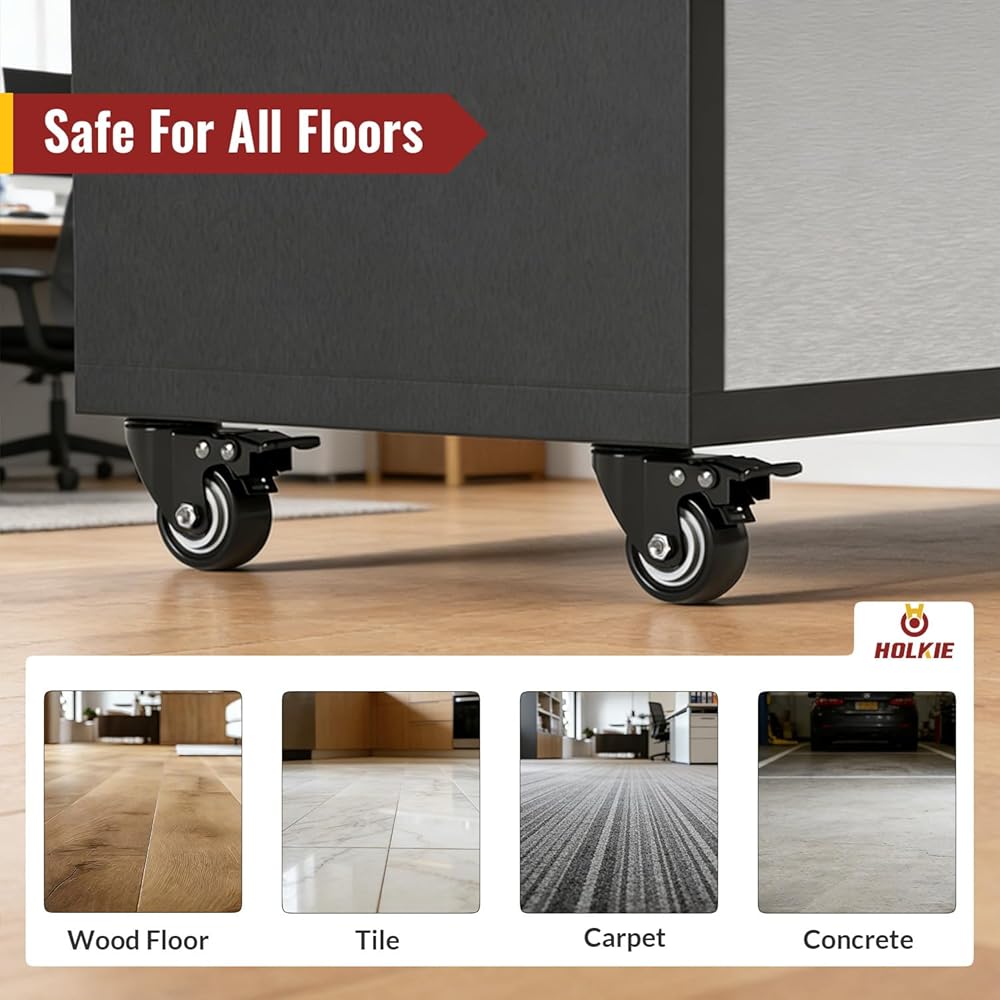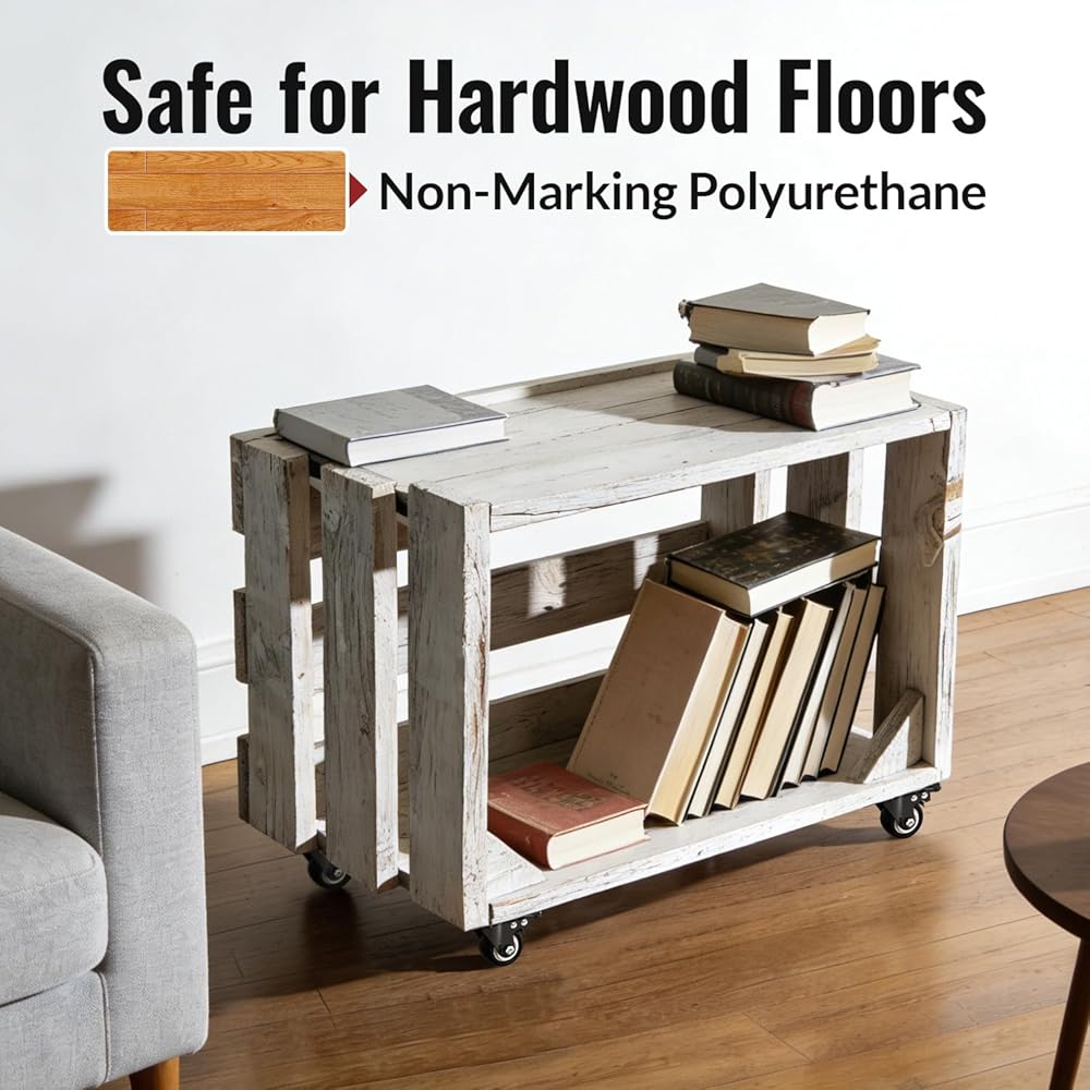 [SAFE FOR HARDWOOD FLOORS] These Non-marring Polyurethane (PU) Rubber Wheels glide silently without leaving scratches. Enjoy the strength of industrial casters with the quiet ride of rubber—perfectly safe for hardwood, tile, and laminate floors.
