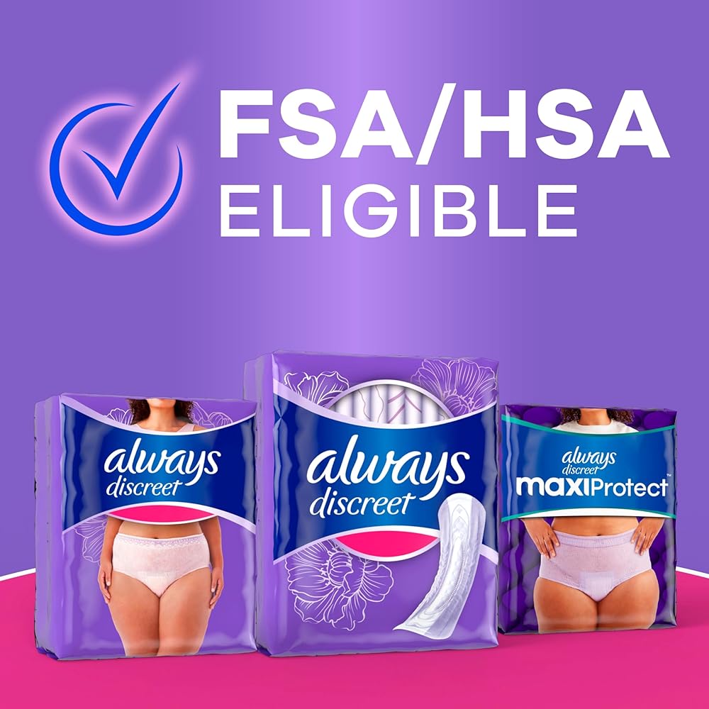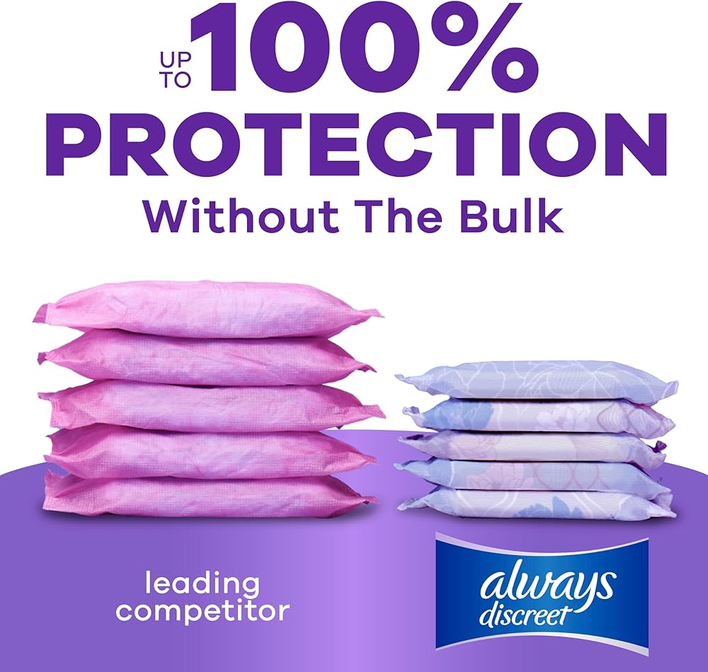 Looking for dependable, strong, bladder leak protection that's barely noticeable under clothes? Experience incredible bladder leak and postpartum incontinence protection in a surprisingly thin and discreet incontinence pad for women. Always Discreet disposable Incontinence Pads for women provide the comfort you need with up to the 100% leak-free protection you deserve. Thanks to a unique absorbent core that keeps your skin dry by absorbing bladder leaks in seconds, you'll be able to stay comfortable and feel fresh for hours. Walk with poise and confidence knowing the RapidDry core has double-layer protection that absorbs fluid in seconds and holds up to 5x the average leak, giving you extra bladder control protection where you need it most. The LeakGuards help keep wetness away from the sides and stop leaks at the legs where they happen most, while the lightly scented OdorLock technology neutralizes odors instantly and continuously. Don't let bladder leaks get in the way of your day. Simply find your best fit with the Always Discreet sizing chart to find your absorbency need and then underwear size to get bladder control pads for women with protection you can depend on. Always Discreet Incontinence Pads are available in bulk for added convenience and come in a complete range of absorbencies and lengths.