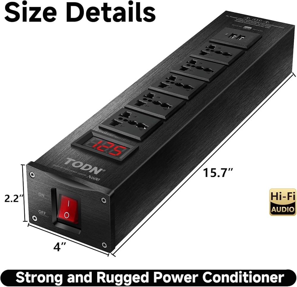 Improved Performance: TODN audio power conditioner for studio delivers clean and stable power to audio gear, video systems, computers, and electronic instruments to enhance vocal clarity and pinpoint imaging, enabling you to hear every breath and string vibration and enjoy stable 4K/8K visuals. Ideal for electronic devices that are sensitive to power fluctuations or require conditioned power for peak performance, such as amps, televisions, networking equipment, and laboratory equipment