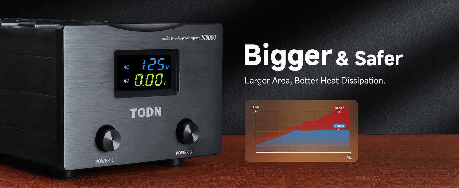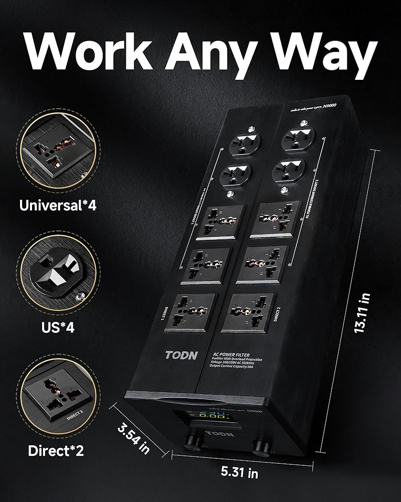 Improved Performance: TODN audio power conditioner for studio delivers clean and stable power to audio gear, video systems, computers, and electronic instruments to enhance vocal clarity and pinpoint imaging, enabling you to hear every breath and string vibration and enjoy stable 4K/8K visuals. Ideal for electronic devices that are sensitive to power fluctuations or require conditioned power for peak performance, such as amps, televisions, networking equipment, and laboratory equipment