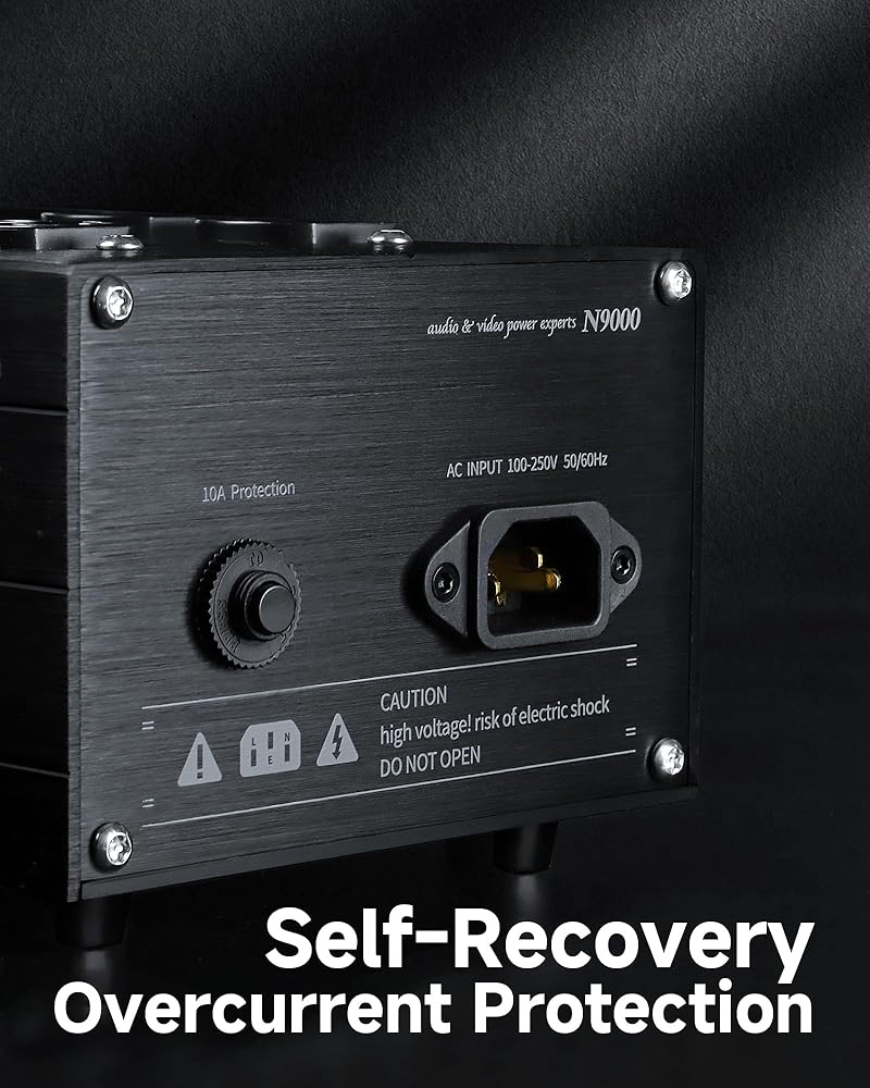 Power Cleaning & Noise Reduction: This professional power conditioner utilizes German-made capacitors to filter EMI and AC line noise from the power supply, thereby improving the performance and lifespan of sensitive electronic equipment. It suppresses low-frequency noise and ultra-high-frequency interference while delivering purified power, which significantly reduces the background noise floor and improvements in sound transparency and detail retrieval. Perfect for hi-end home theater systems