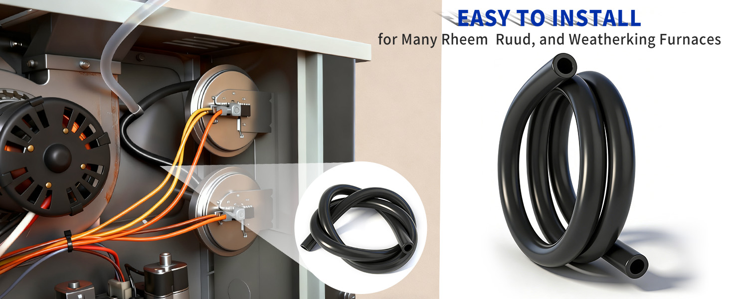 【Premium Material】Constructed from high-quality, heat-resistant silicone rubber. Its flexible and resilient design facilitates routing around furnace pipes, brackets, and confined spaces. Suitable for high-temperature, narrow environments within furnaces such as combustion chambers, fireboxes, or flues, delivering reliable performance for long-term furnace pressure switch monitoring