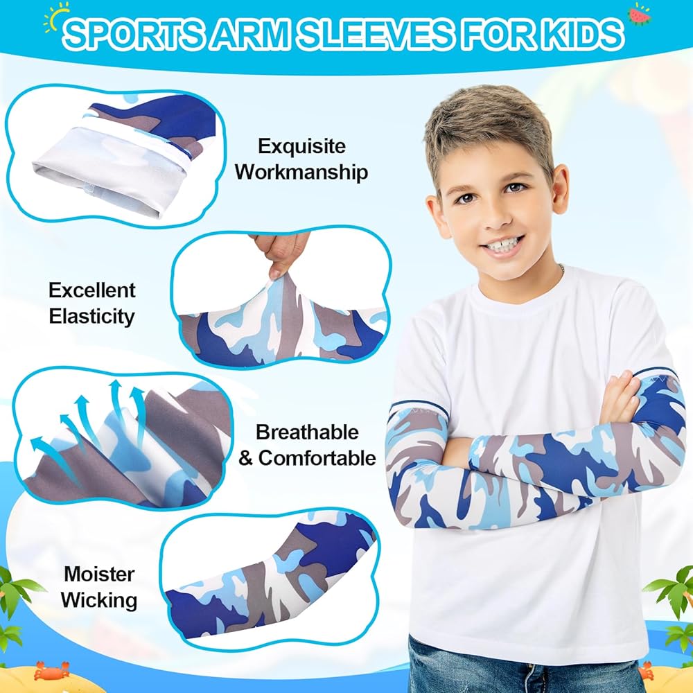 Soft & Comfortable: Crafted from comfortable fabric, these kids' arm sleeves are soft against the skin and offer excellent stretch for fit. They are tear-resistant and highly breathable, ensuring kids stay cool and comfortable during extended wear and activities