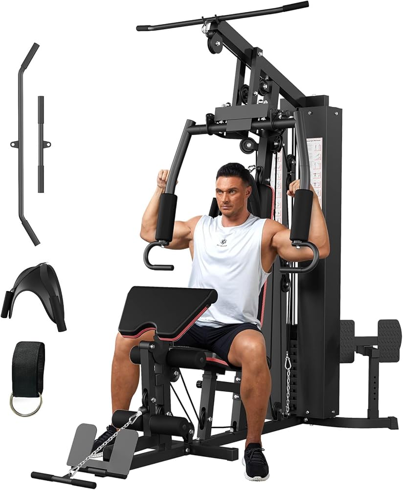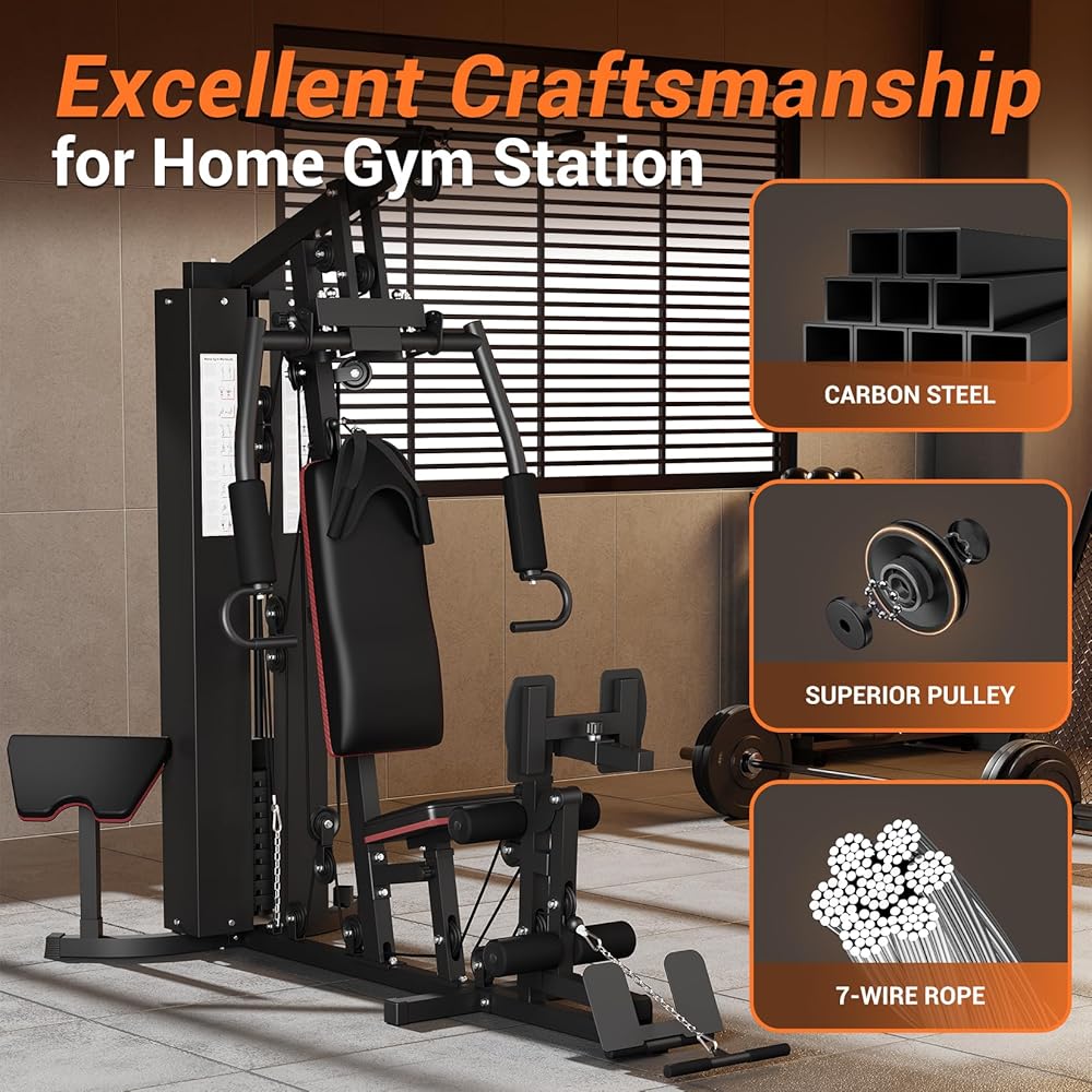 Commercial grade structure: Designed with 2 "x3" thick steel pipes (2.5mm thick), it can support a user weight of 400lbs and a system capacity of 1000lbs. Equipped with military grade nylon coated cables (tested for 1000 pounds tensile strength), it has lifelong durability under high-intensity training.