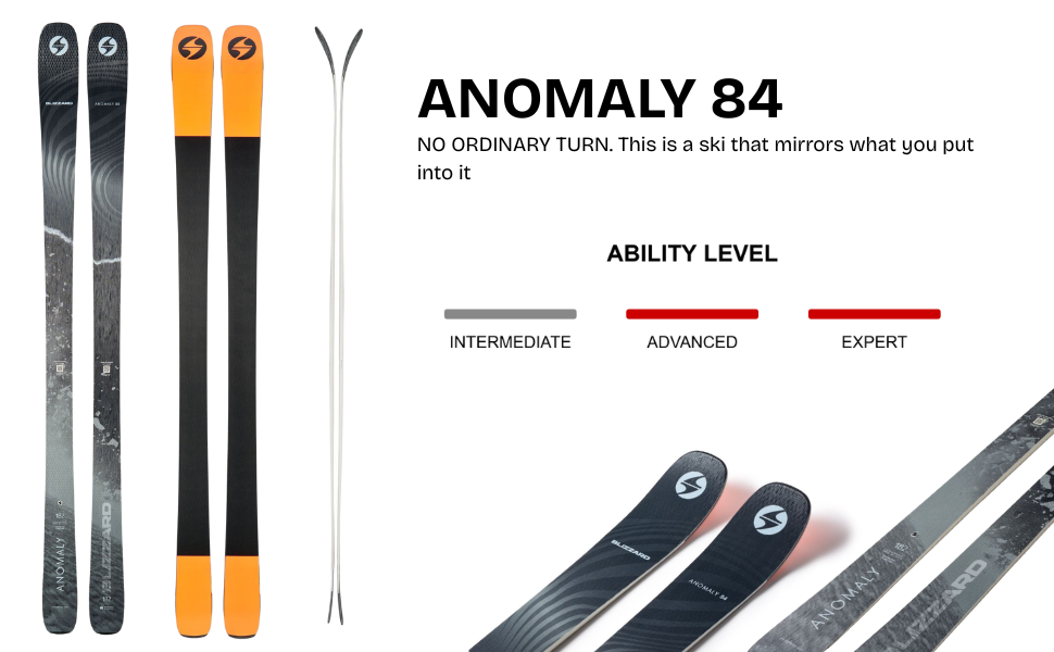 NO ORDINARY TURN. This is a ski that mirrors what you put into it. Blizzard's TrueBlend woodcore ensures you don't have to change your style for the Anomaly 84. Instead, this ski is made to make you feel comfortable on snow. Roll these up on edge to feel a bite, take a break and ski them upright, or get forward and drive them down the fall line—the Anomaly 84 will support your style and approach. This ski is fun, pure and simple.