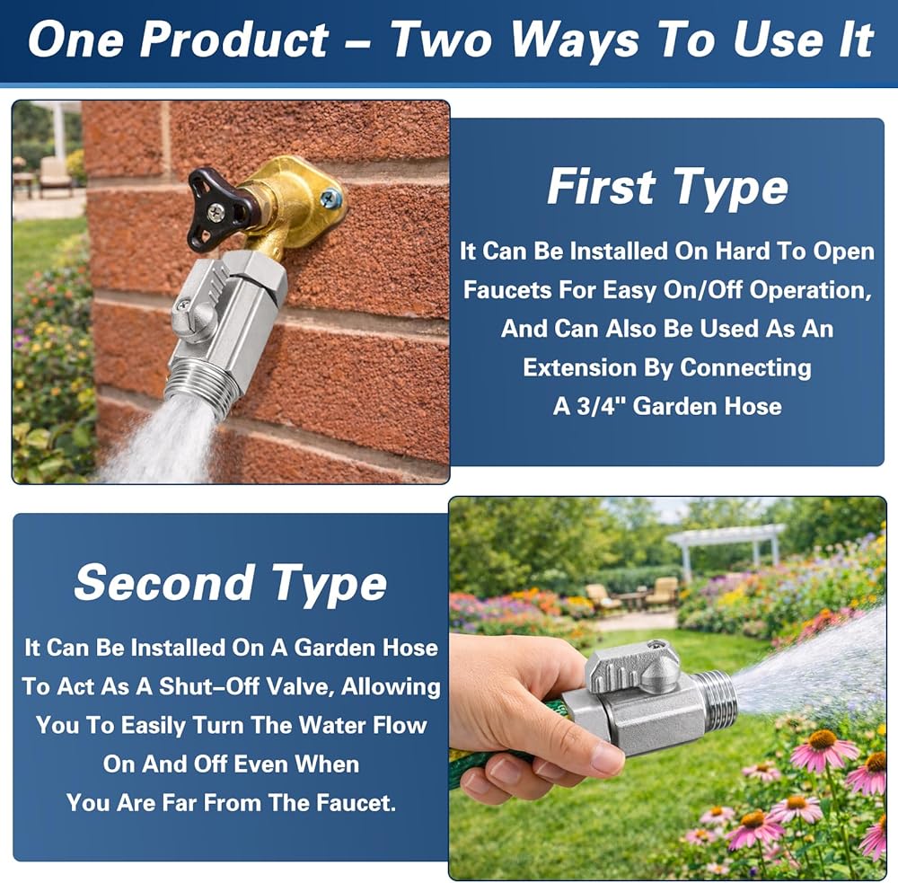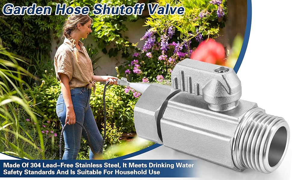 PREMIUM 304 STAINLESS STEEL BODY: Constructed from solid 304 stainless steel for superior durability and corrosion resistance. The heavy-duty metal body is ideal for outdoor garden use and long-term water system applications.