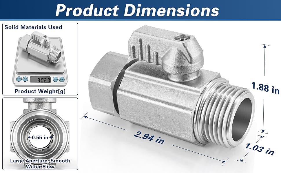 FULL PORT DESIGN FOR MAXIMUM WATER FLOW: Designed with a large 0.55 inch inner diameter full port structure that allows unrestricted water flow. Compared with standard hose valves, this design maintains stronger water pressure and smoother water flow.