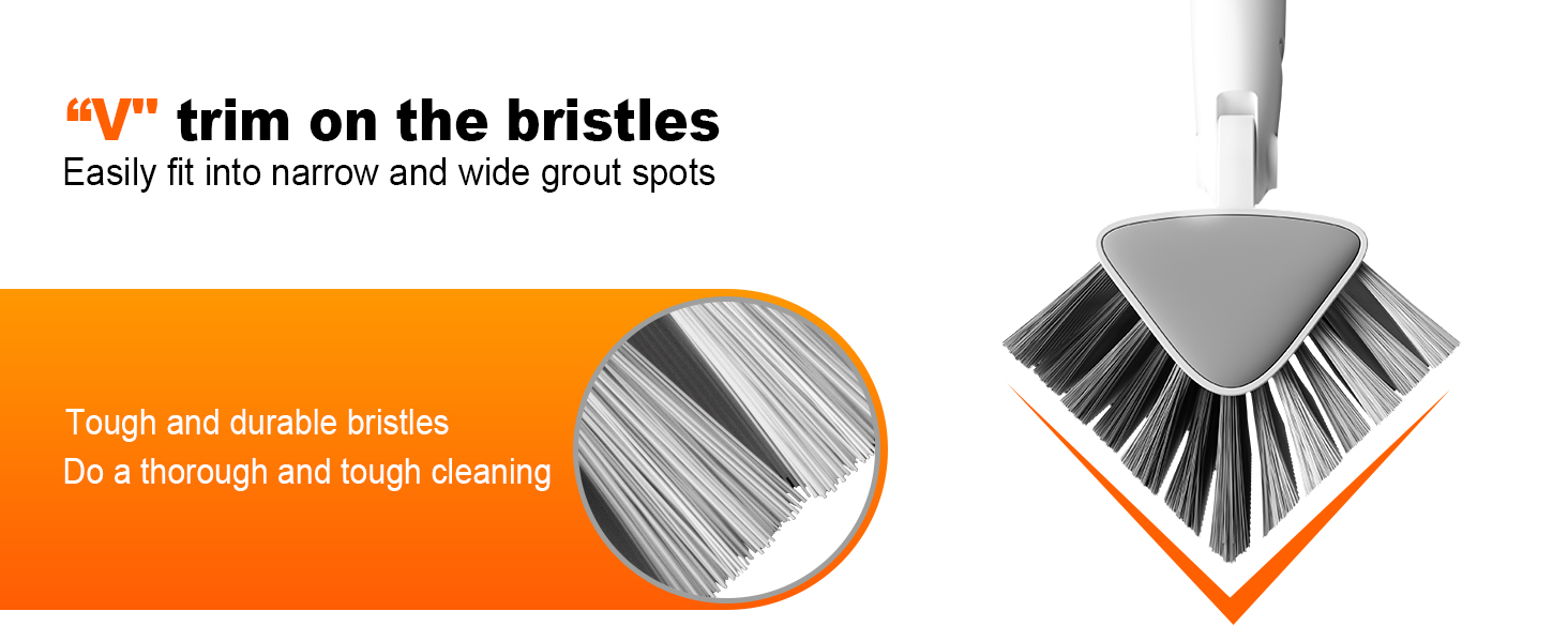V-Shaped Design & Deep Cleaning: V-shaped floor brush of this heavy-duty deck brush dig deep into crevices, doubling cleaning efficiency, The unique V-shaped tip of this floor scrub brush effortlessly reaches corners and hower brush for cleaning gaps that standard flat brushes can't access, such as edges and tile grooves. Its design channels debris and water toward the center, preventing splatter and delivering a thorough clean in one go.