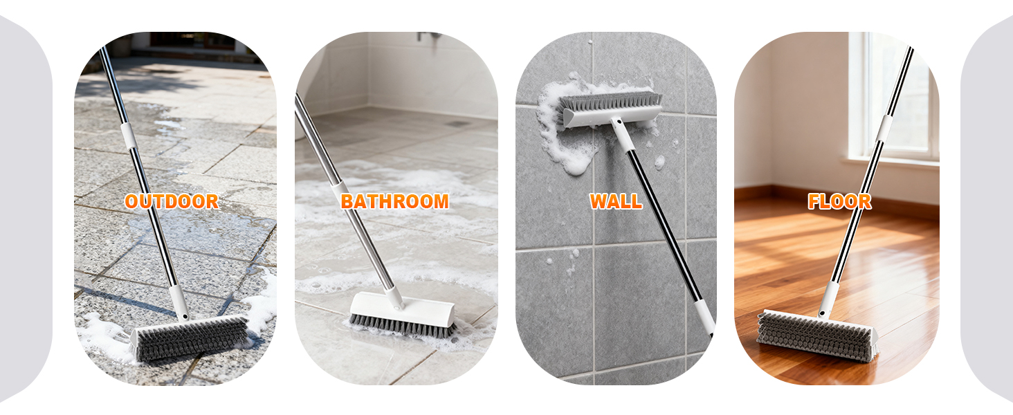 Ergonomic Long Handle & Durability: Floor scrub brush with long handle Comfortable, ergonomic 55-inch handle makes this floor scrub brush easy to use and built to last. The long handle enables comfortable standing cleaning while reducing back strain. Reinforced connection between the brush and handle ensures long-term durability, making this floor brush both user-friendly and reliable.