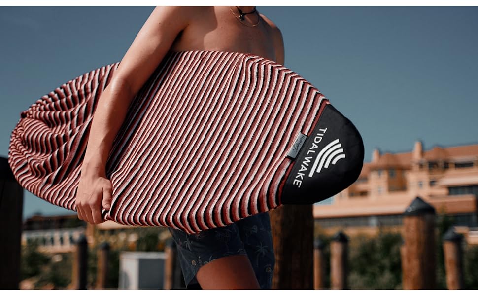 TAG YOUR BAG! – Not your ordinary surfboard bag! The Tag-It Teal-Cream-Taupe Striped Wake Surf & Wakeboard Sock is a soft fabric cover that protects your board and Identifies it with a customizable, built-in exterior ID tag – perfect for writing your name or your board's nickname. A “Must Have” watersport board accessory!