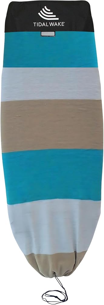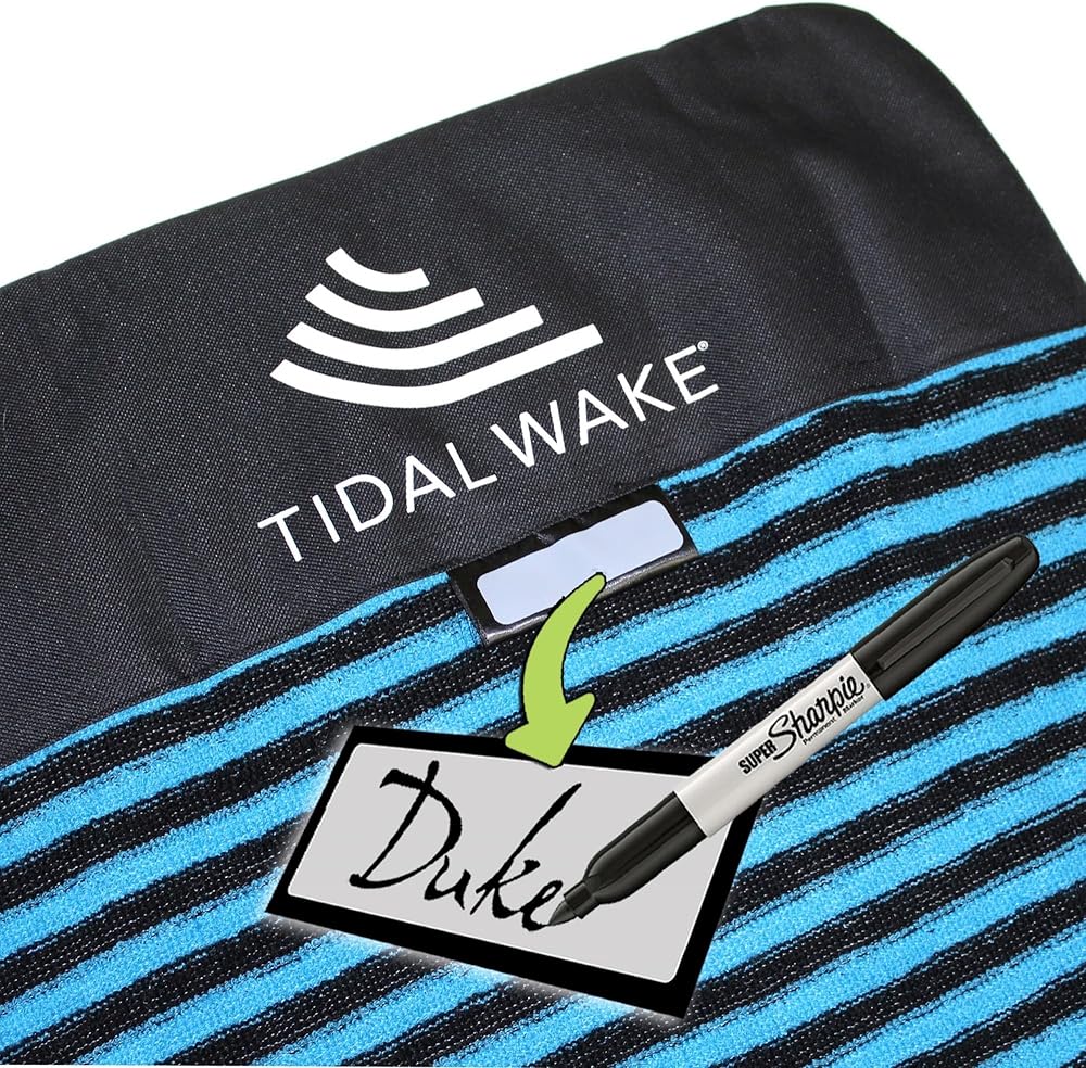 Tidal Wake TAG-IT –58" Snub Nose Surf & Wake Board Sock - Soft Wakesurf/Wakeboard Bag with Built-in Name Tab, Customizable Wake Surfboard/Wakeboard Cover Protects Your Board Teal-Cream-Taupe