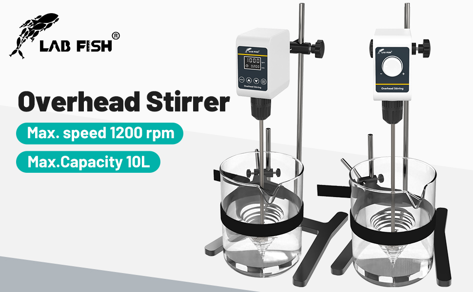 LAB FISH Overhead Stirrer(OS-5E) 10L Capacity 200-1200 RPM Knob Control Variable Speed Mixer Handles High Viscosity Liquids for Chemical/Reagents/Paints