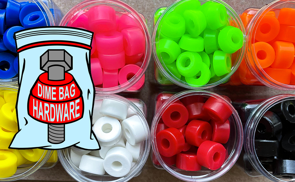 Dime Bag Skateboard Bushings (for 2 Trucks) + Red Riser Pads and 1" Phillips Hardware (96A Red)