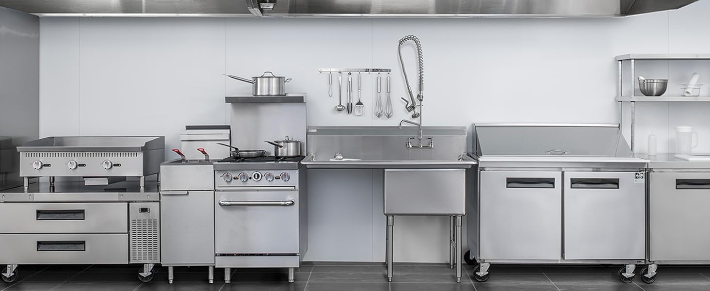 متعددة الاستخدامات وسهلة الاستخدام: مثالية للمطابخ التجارية والمطاعم والمقاهي والمخابز والحانات والمكاتب؛ إذا كانت لديك أية مخاوف، فيرجى إخبارنا، وفريق الاستجابة السريعة لدينا جاهز للمساعدة. ملاحظة: الضمان الخاص بنا لا يغطي جميع المعدات المستخدمة في شاحنات الطعام أو المقطورات أو القوارب أو العناوين السكنية أو الجزر أو الديكورات المدمجة.