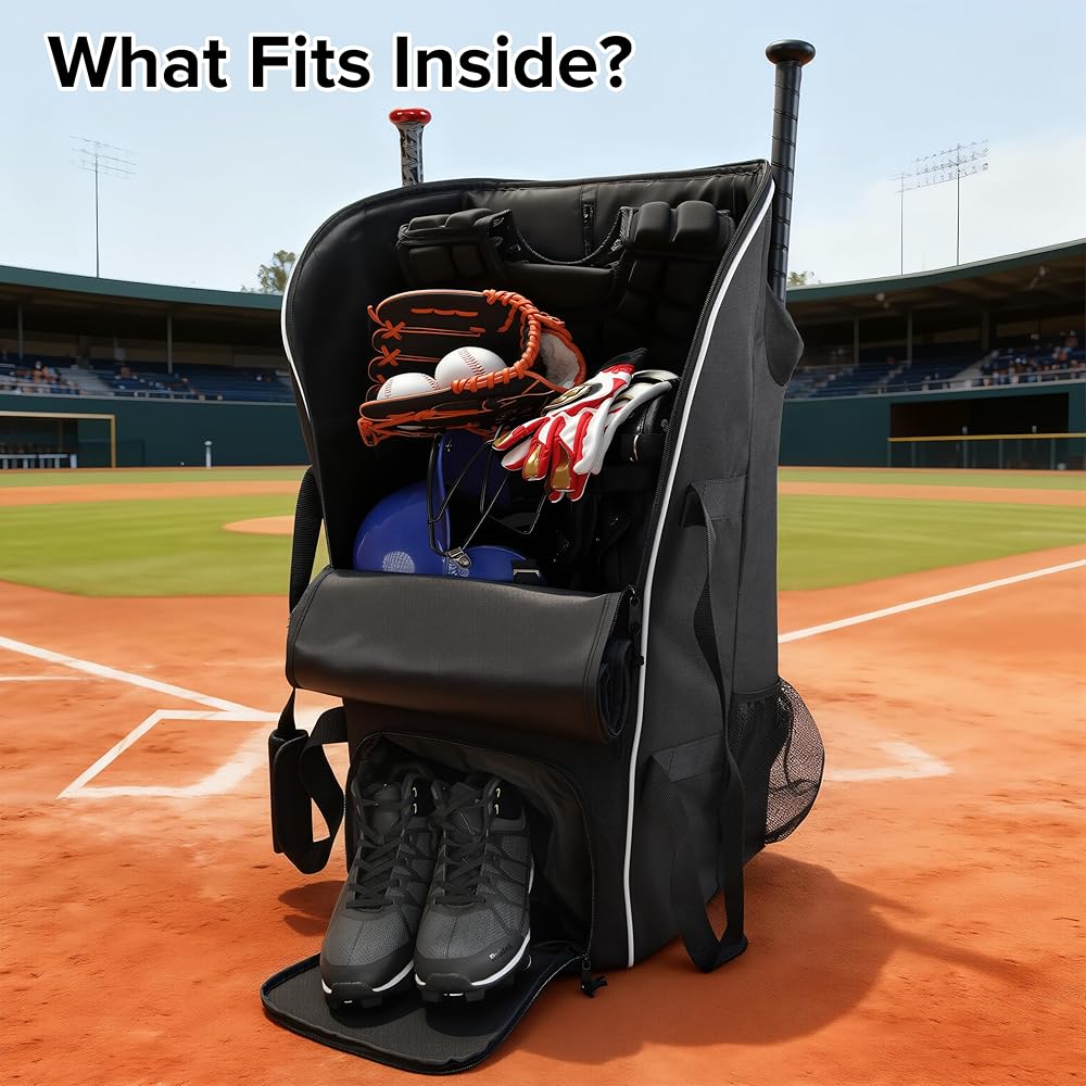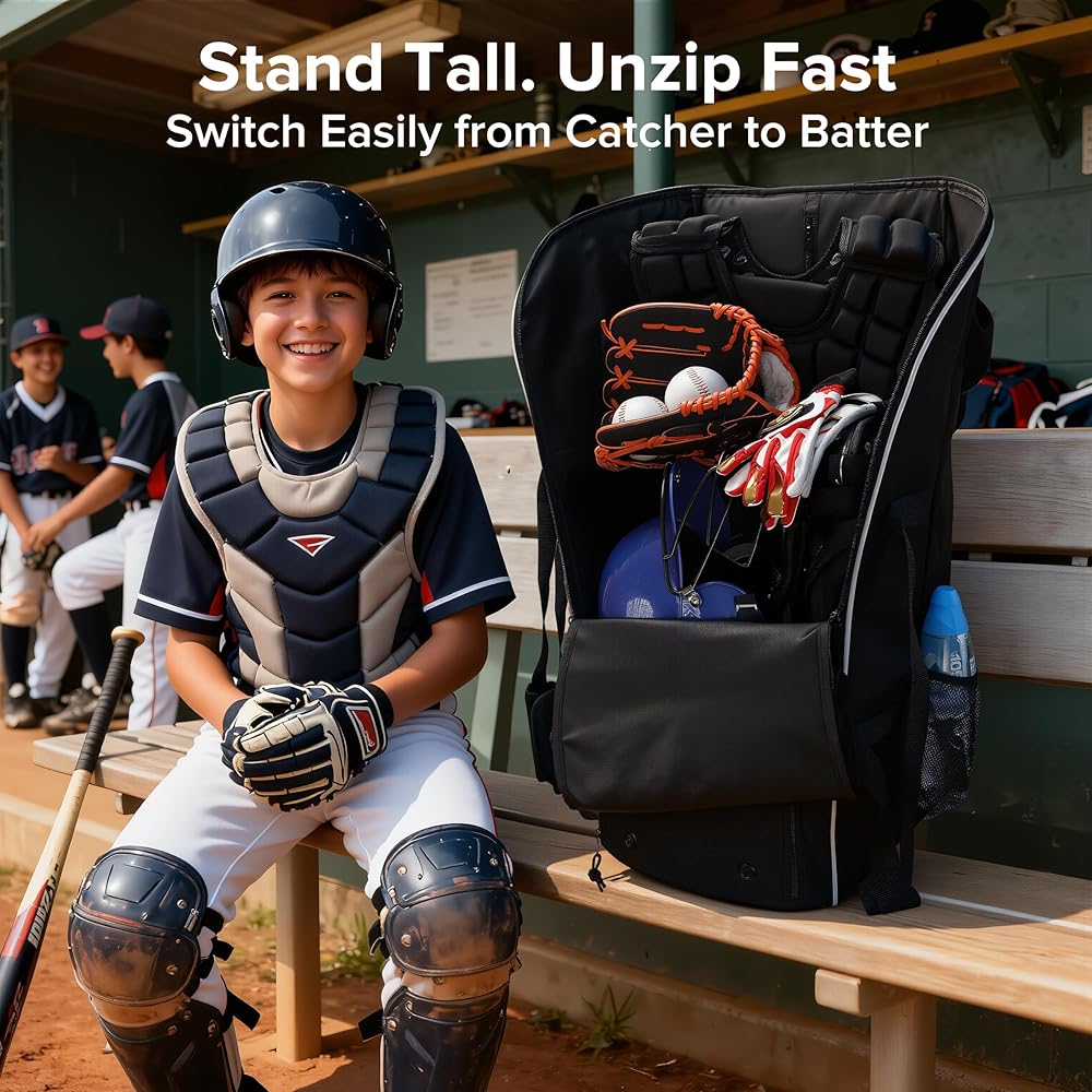 MADE FOR CATCHER GEAR: Spacious compartment layout helps organize bulky baseball or softball equipment, including helmet, glove, cleats, bats, balls, and other field essentials