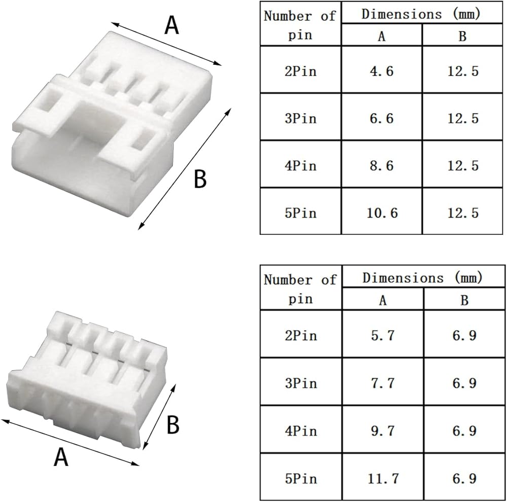 • Universal 2.0mm Pitch Compatibility -- PH 2.0mm (0.08 inch) pin pitch. This JST2.0 connector is widely used in low-current applications across various electronic devices, making it an ideal choice for repairs, extension cables, or custom wiring harnesses.