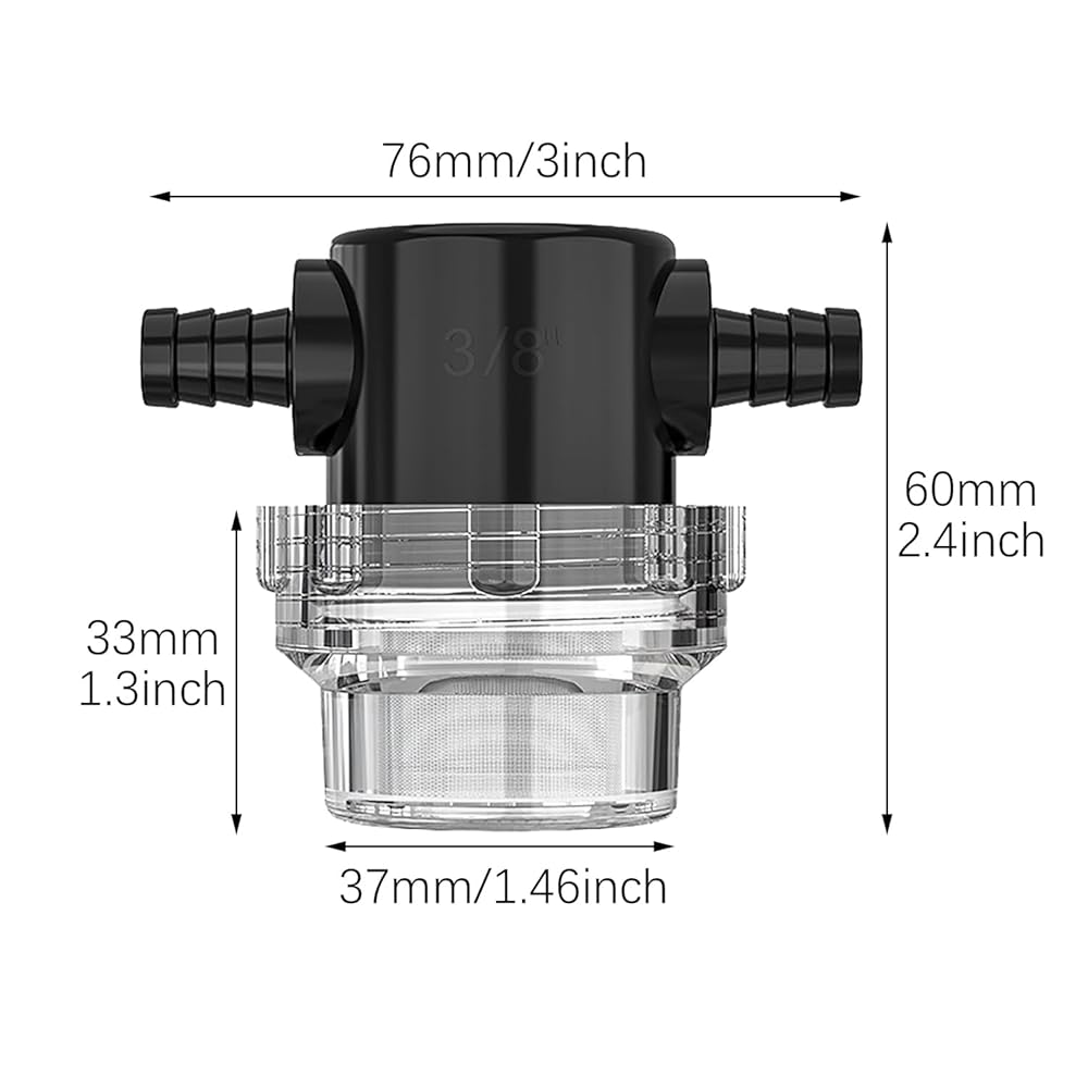 RLECS Black Water Pump Filter 3/8 Inch Hose Barb Inline Strainer Suitable for Sprayers High Pressure Cleaner Ship