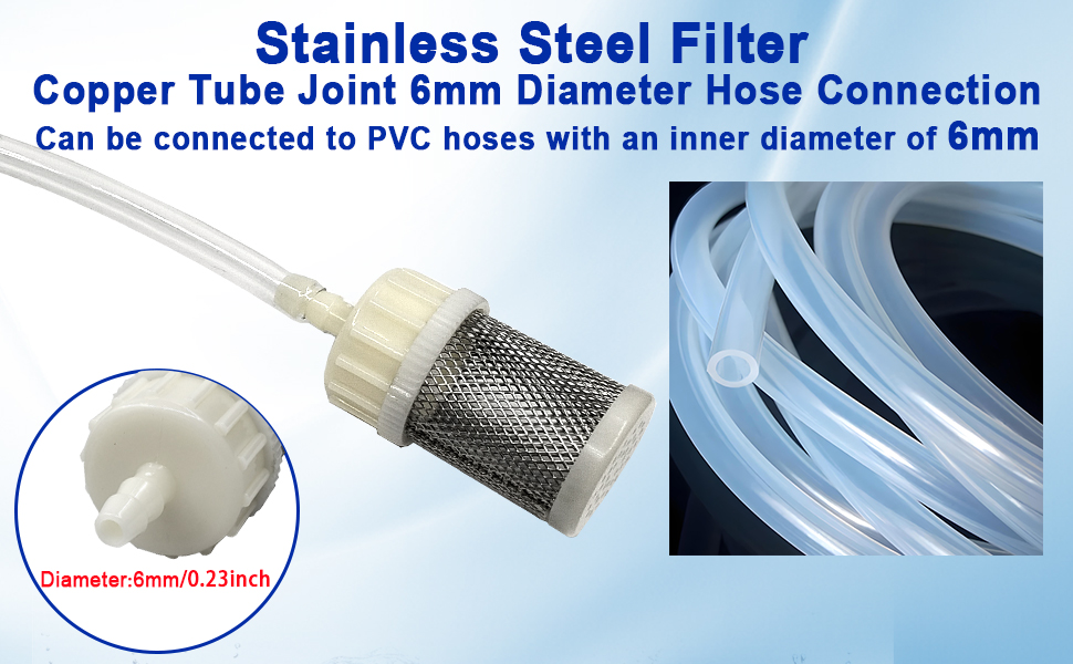 【 Size 】 6mm inline filter stainless steel filter cover is easy to rotate and disassemble, and the plastic joint can be inserted into a 6mm diameter hose for connection