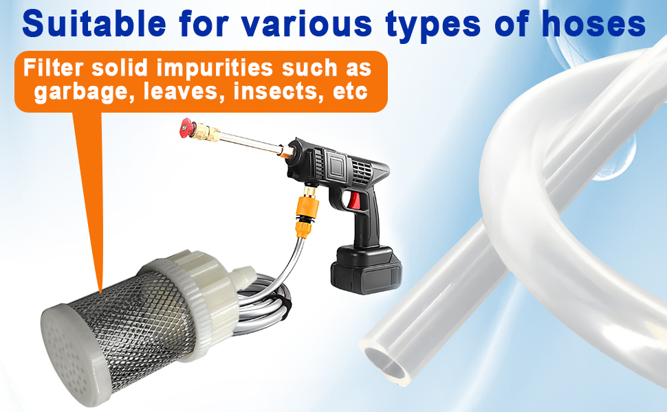 【Easy to clean】 Removable household hose filter, easy to clean, save effort and worry. Easy to install, just push the hose into the barb and then into the pond.