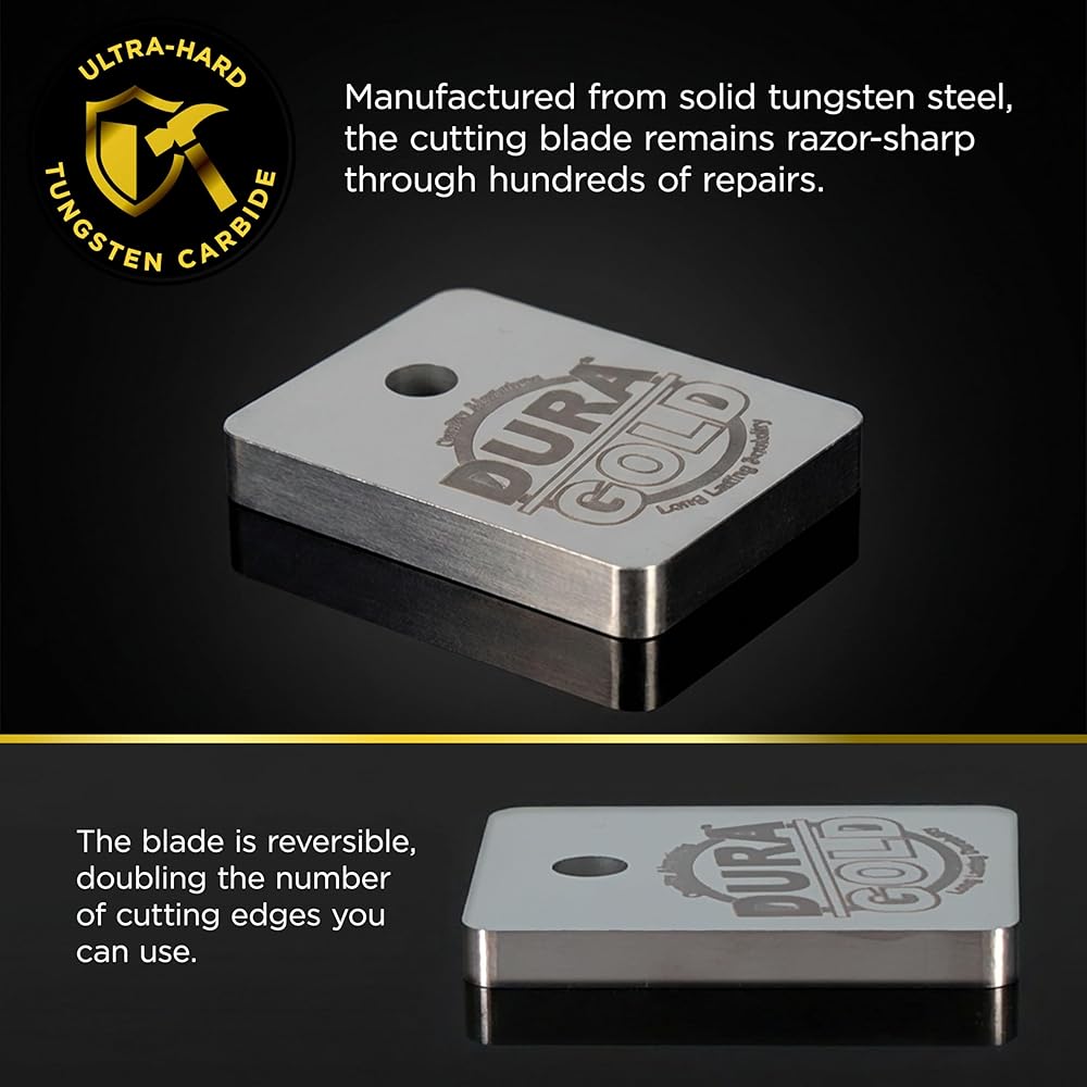 Ultra-Hard Tungsten Carbide: Manufactured from solid tungsten steel, the cutting blade remains razor-sharp through hundreds of repairs. Unlike standard metal files, this high-density carbide blade provides a mirror-polished edge that cuts through cured clear coats cleanly and consistently. The blade is reversible, doubling the number of cutting edges you can use.