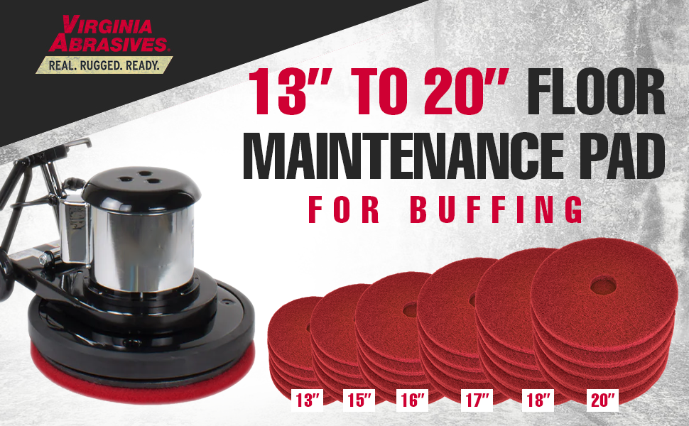 Virginia Abrasives 17" Red Floor Maintenance Pads – Synthetic Non-Woven Buffing/Scuff Removal Pads for Orbital Machines, 5-Pack