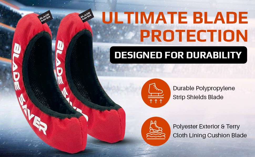 MADE TO LAST: The GlideDry ice skate blade protectors feature a durable polypropylene strip along the bottom that extends from toe to heel both inside and outside, resisting cuts and tears better than standard soakers. Meanwhile, the polyester exterior protects against external impacts and repels moisture.