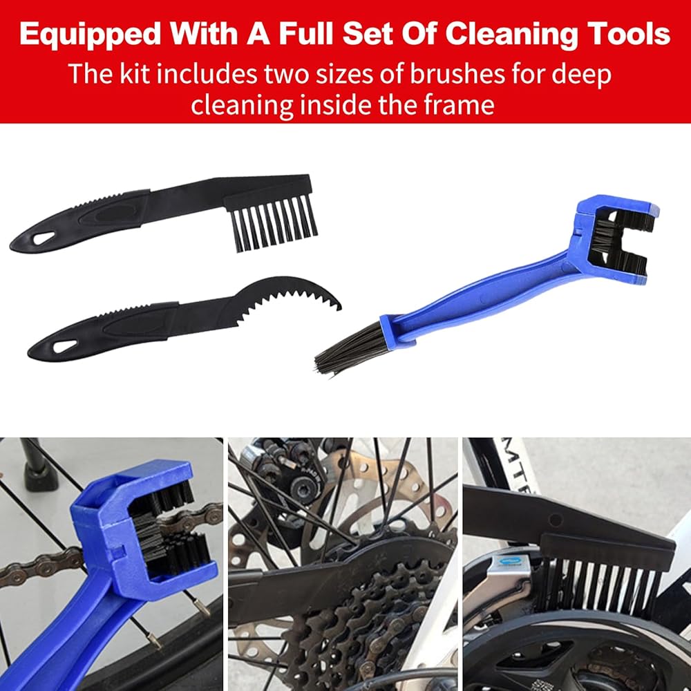 Garage Deep Clean – Use the full bike maintenance kit for seasonal overhauls. The large brush tackles frame dirt while the small brushes detail your drivetrain like a pro.