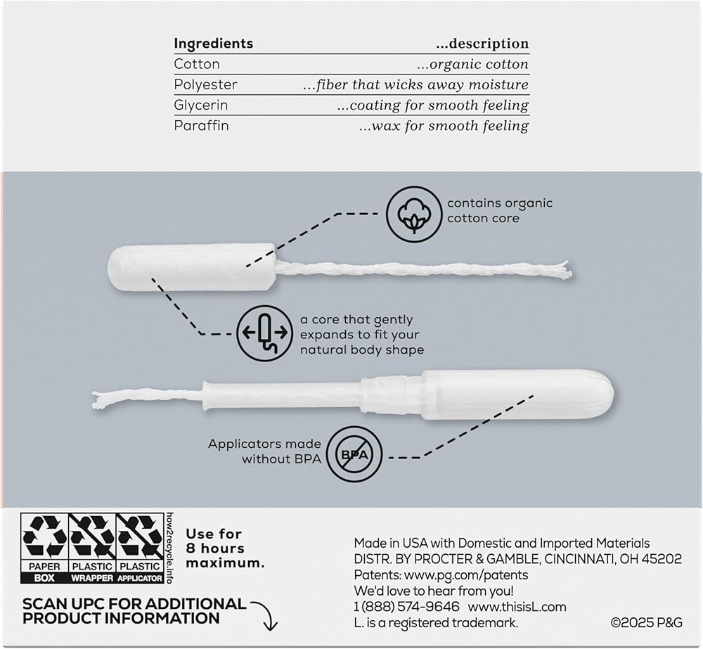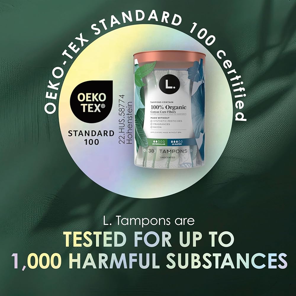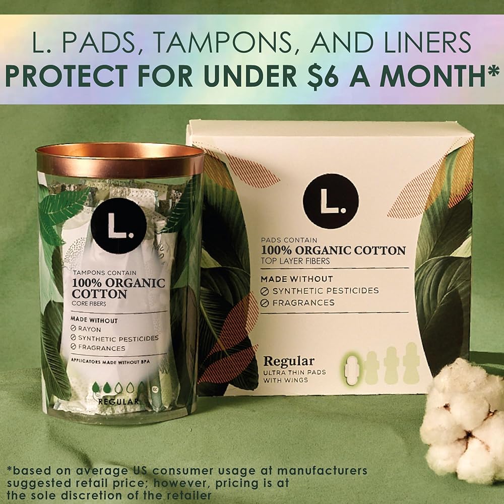 At L, we believe that period care should be both gentle on skin and powerful. Our mission is to provide exceptional protection you can trust. Our pads, tampons, and liners are made without synthetic pesticides and fragrances and crafted with a powerful leak-stopping design. We prioritize using only high-quality ingredients, including an organic cotton core in our tampons and an organic cotton top layer on our pads and liners. Experience the perfect balance of gentle and powerful protection with L., because you deserve nothing less. L. is for Loving Your Self: Our tampons contain a US grown organic cotton core, are made without synthetic pesticides and fragrances, and have applicators made without BPA. Also, our pads and liners are made with a US grown cotton top layer and are made without synthetic pesticides and fragrances. L. is for Lending A Hand: We see access to period care as fundamental for every body and an opportunity for change. We are on a mission to make exceptional period care accessible for all. Thats why we provide funding every year to non-profit, community-based organizations around the world that increase access to period care and menstrual health education. SAFETY STARTS WITH SCIENCE: Protection begins with safety. That's why at L. we have engineers, chemists, biologists, and safety scientists who evaluate every ingredient throughout the discovery, design, and development of our products. Ingredient safety is our top priority, so we are continuously studying new scientific research, reviewing consumer feedback, and connecting with experts, to ensure every product performs at its highest and safest level. QUALITY IS OUR OBSESSION: For us, creating a product you trust is more than just combining great ingredients – it's working with other companies that care about quality and safety as much as we do. We work hard to find the right partners and suppliers worldwide with ingredients that meet our standards. We draw from our resources to follow industry-leading testing methods on our ingredients and screen for background substances. We rely on proof and data when selecting our ingredients, but also for setting standards on how our products are made.