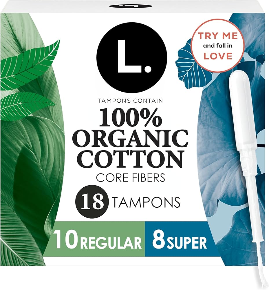 L. Tampons, Made with Organic Cotton, Regular/Super Absorbency, Multipack, Made Without Synthetic Pesticides, Rayon or Fragrances, Applicator Made Without BPA, Leak-Stopping Design, 18 Count