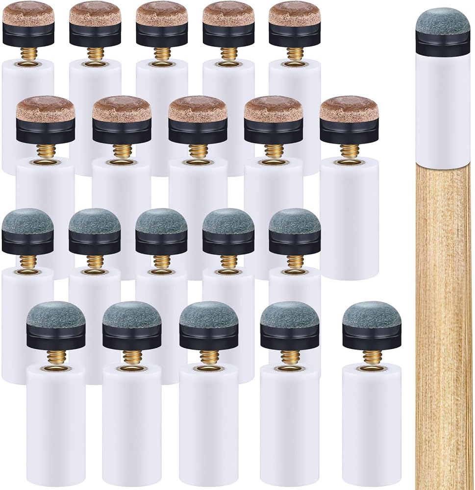 20 Sets Billiard Cues Tips Replacement with White Pool Cue Stick Ferrules