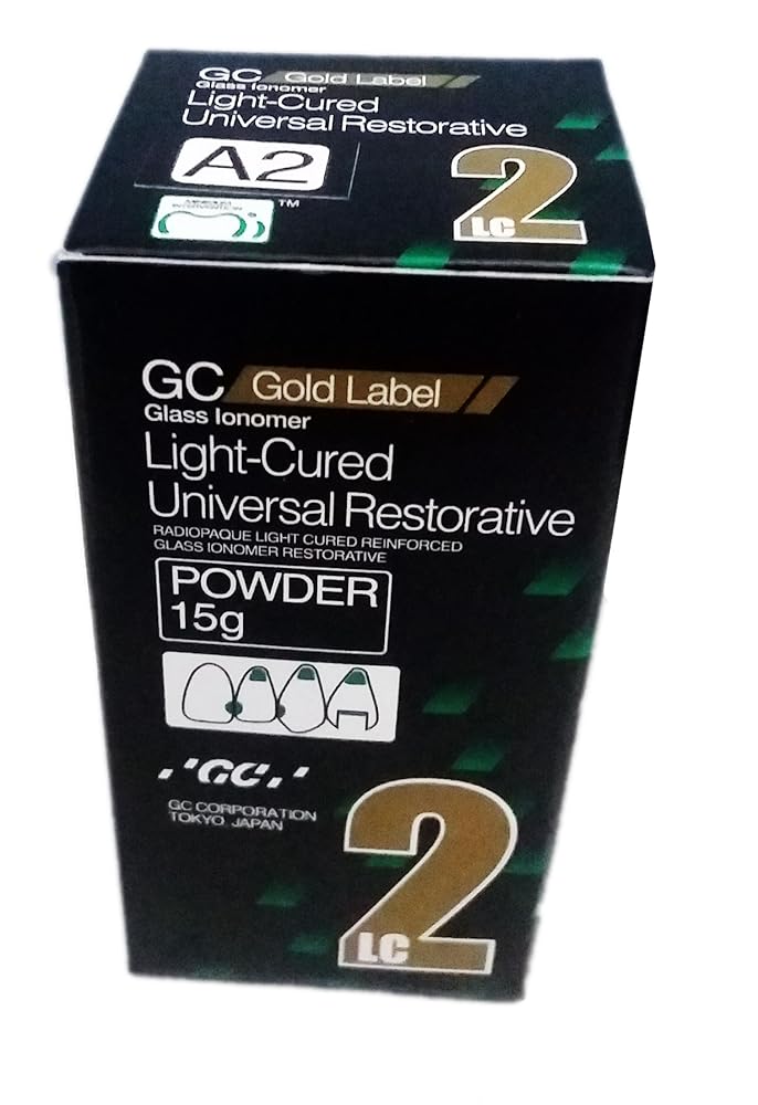 Fuji II LC - A2 Powder, Light-Cure Resin Reinforced Glass Ionomer Restorative, 15 Gm. Powder. #000196 Powder refill for GC Fuji II LC Improved. Uses unique triple-cure process for increased strength. Highly water-resistant restorations. 20-second light curing. Fuji II LC Improved Powder is a powder refill for Fuji II LC Improved. Fuji II LC Improved is a highly water-resistant restorative material that utilizes a unique triple-cure process, combining self-cure and light-cure for significantly increased mechanical adhesion.Achieve high surface hardness and continuous fluoride release in seconds with the help of Fuji II LC's unique radiopaque formulation.