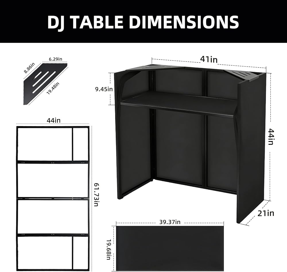 FOLDABLE & PORTABLE & SPACE-SAVING: Adopting a foldable structure design, dj table stand requires no complicated disassembly. After a quick fold in just a few minutes, the volume of dj stand booth is greatly reduced, and paired with storage bag, storing and organizing becomes totally hassle-free. Whether stowing it quickly post-performance or keeping it in a home corner or car trunk, this dj facade booth table takes up minimal space. Its portability lets you carry it effortlessly to outdoor events, so you can kick off your music sessions anytime, anywhere—no more struggling with bulky, hard-to-move traditional DJ tables.