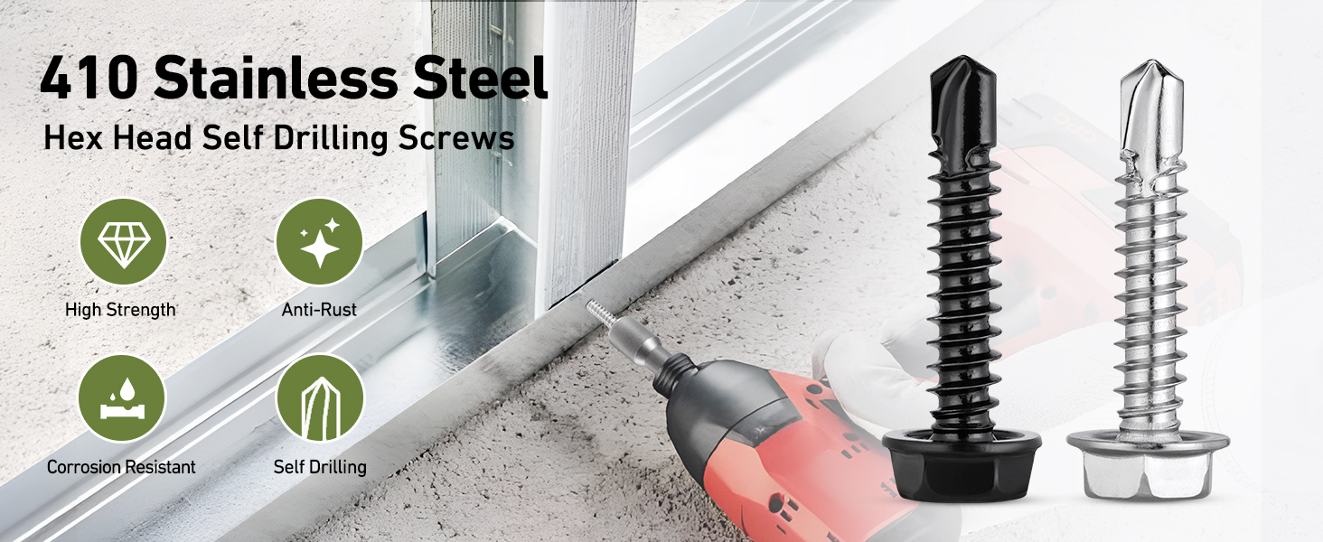 Faster Installation: Featured with drill point, these self drilling screws are designed to drill their own hole and tap their own threads, without the need of pre-drilling hole. Drill, tap and fasten in one go, save user time