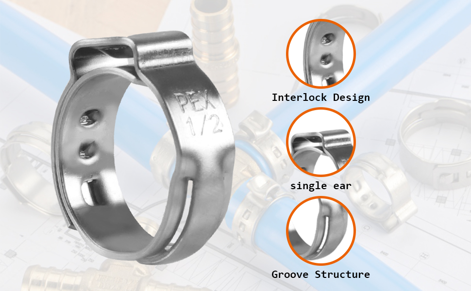 Innovative Single Ear Design: Our single ear clamps feature a 360° design that concentrates sealing pressure, ensuring a leak-free connection for all your PEX, hoses, and tubing applications!