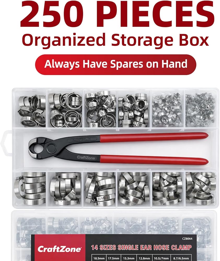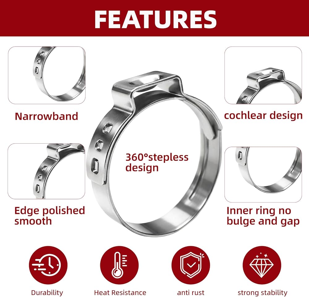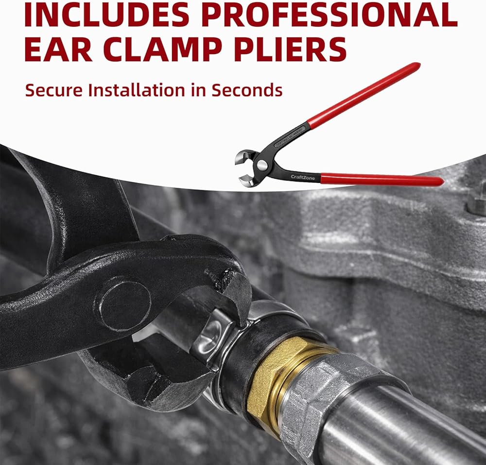 Includes Professional Ear Clamp Pliers - Our kit comes with a dedicated single ear hose clamp pincer tool that makes installation and removal quick secure and effortless saving you time and effort