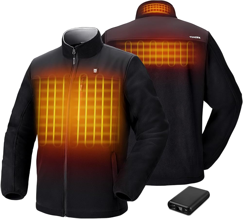 【Warm & Comfortable Fleece】TIDEWE Heating jacket adopts soft, breathable and silent fleece material, quickly trapping and making full use of the heat. It provides the long-lasting warmth and a comfortable fit for your outdoor activities.