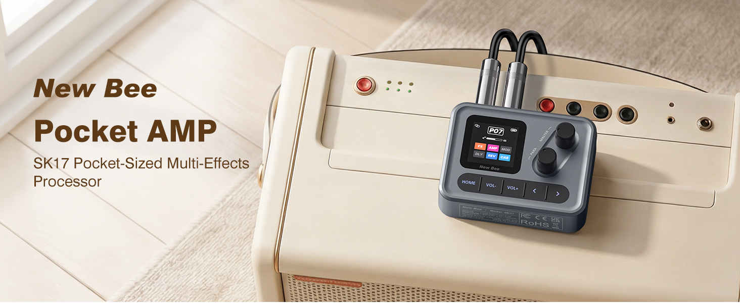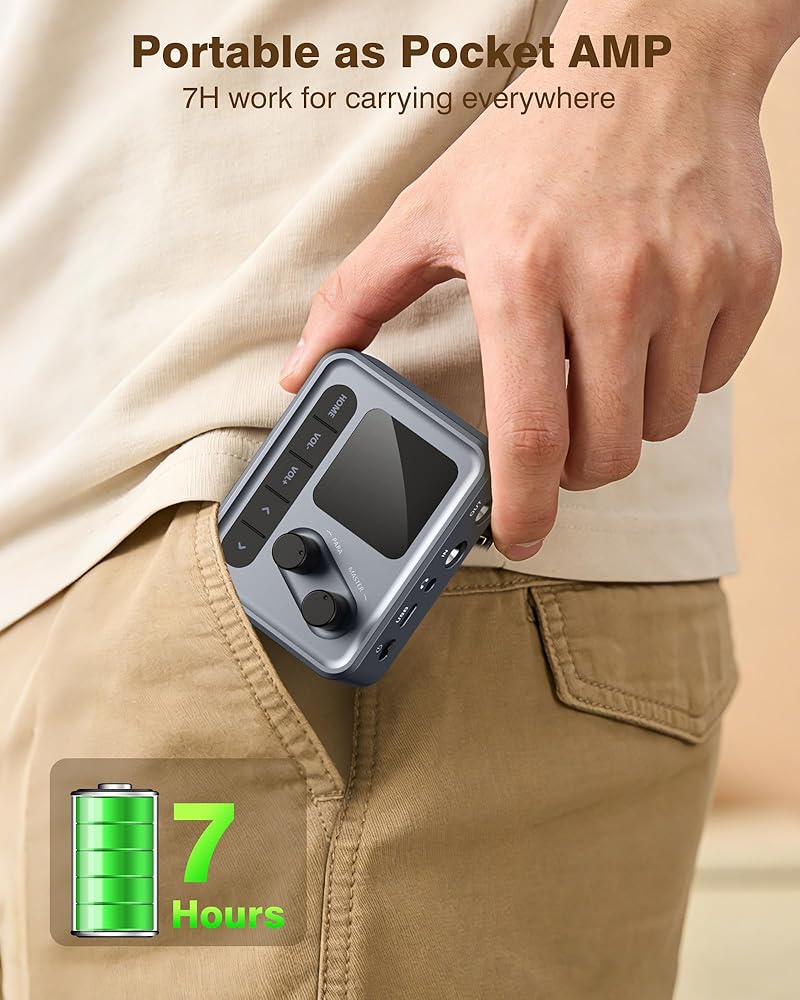 【POCKET-SIZED POWERHOUSE FOR GIGS】 Designed for guitarists on the move, this 120g ultra-light processor fits easily into your pocket or gig bag. The robust 1450mAh rechargeable battery delivers up to 7 hours of continuous performance,making it the ultimate handheld tool for travel, street performing, or late-night practice.