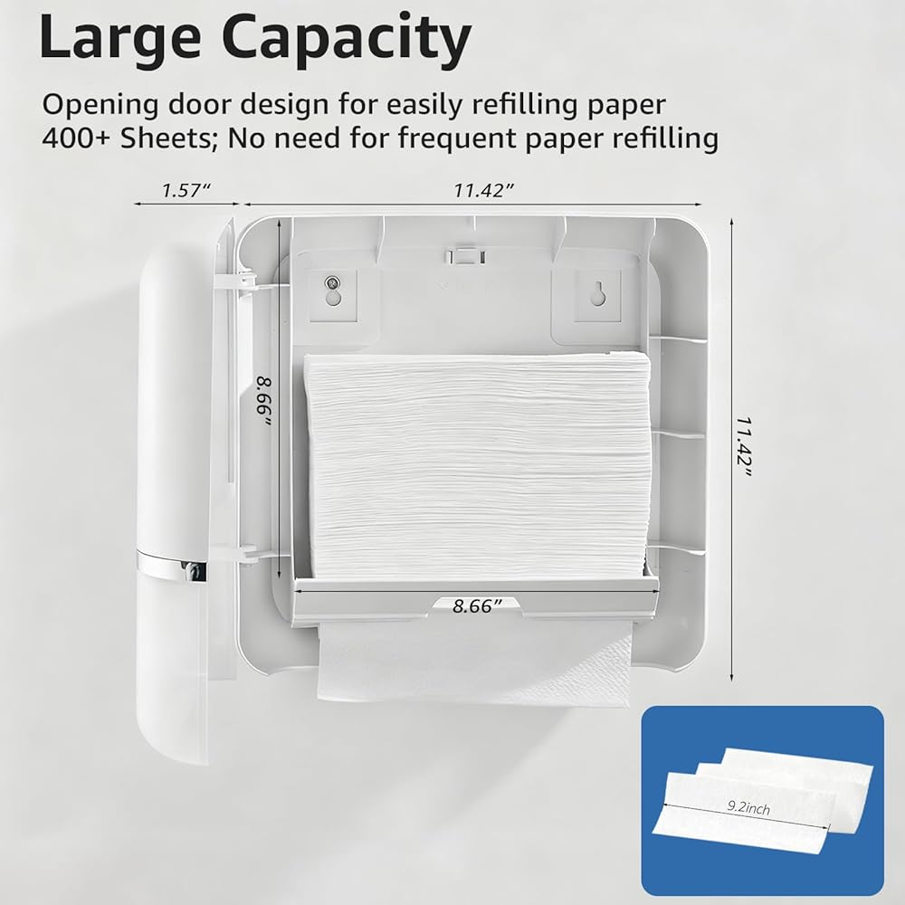 Commercial Paper Towel Holder Dispenser, 400+ Multifold/Trifold/C Fold Hand Towel Dispenser, Wall Mounted Paper Towel Dispenser for Bathroom Tissue Dispenser, Large Capacity