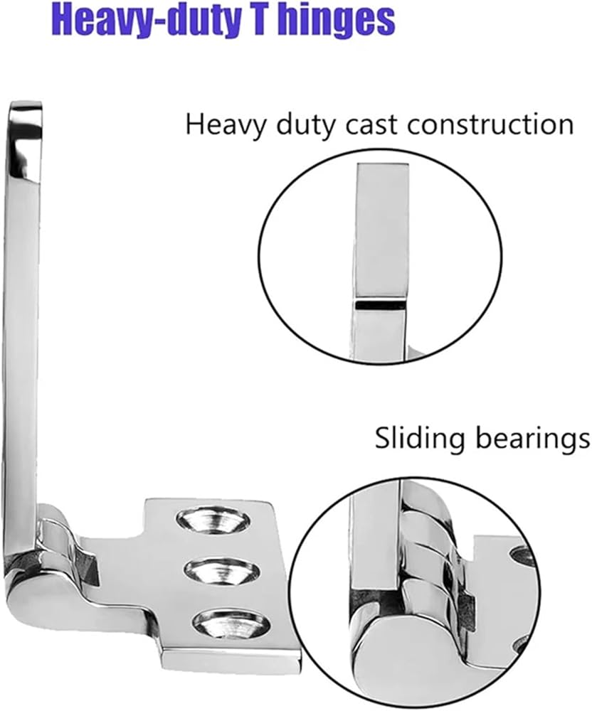 Marine Grade T Hinges 4 Inch X 2 Inches No Noise Heavy Duty 316 Stainless Steel With Screws (4 PCS) 1Pcs