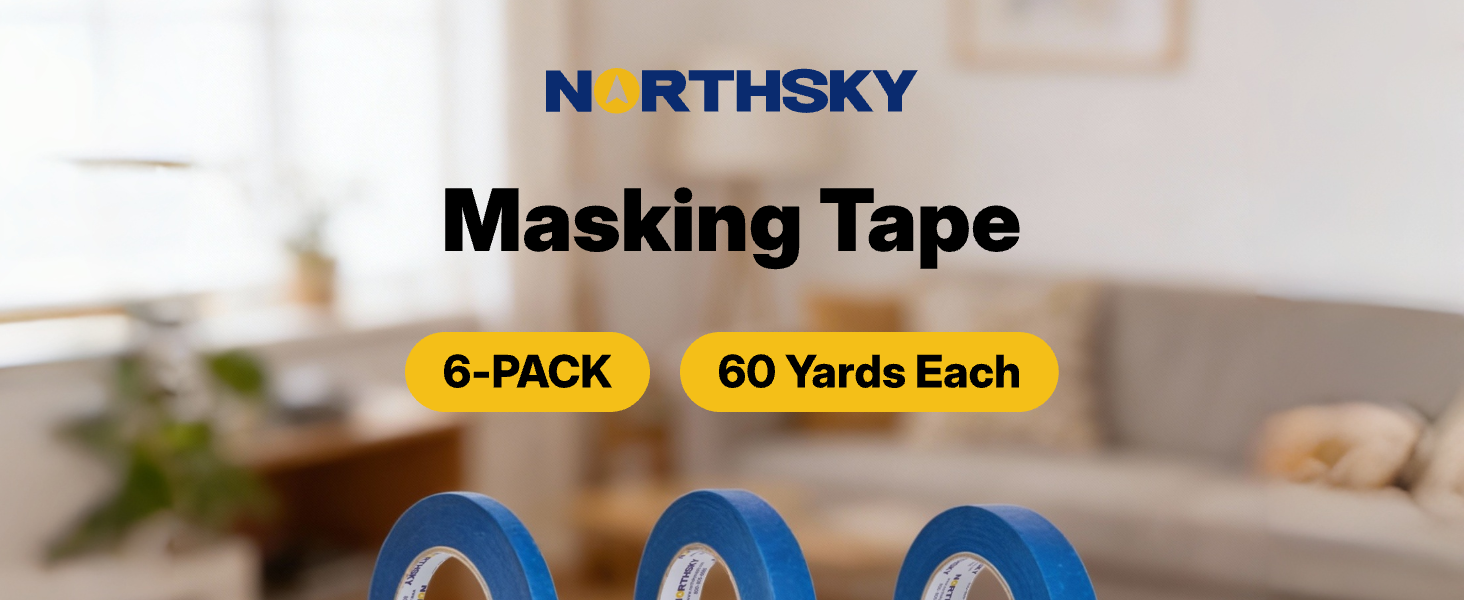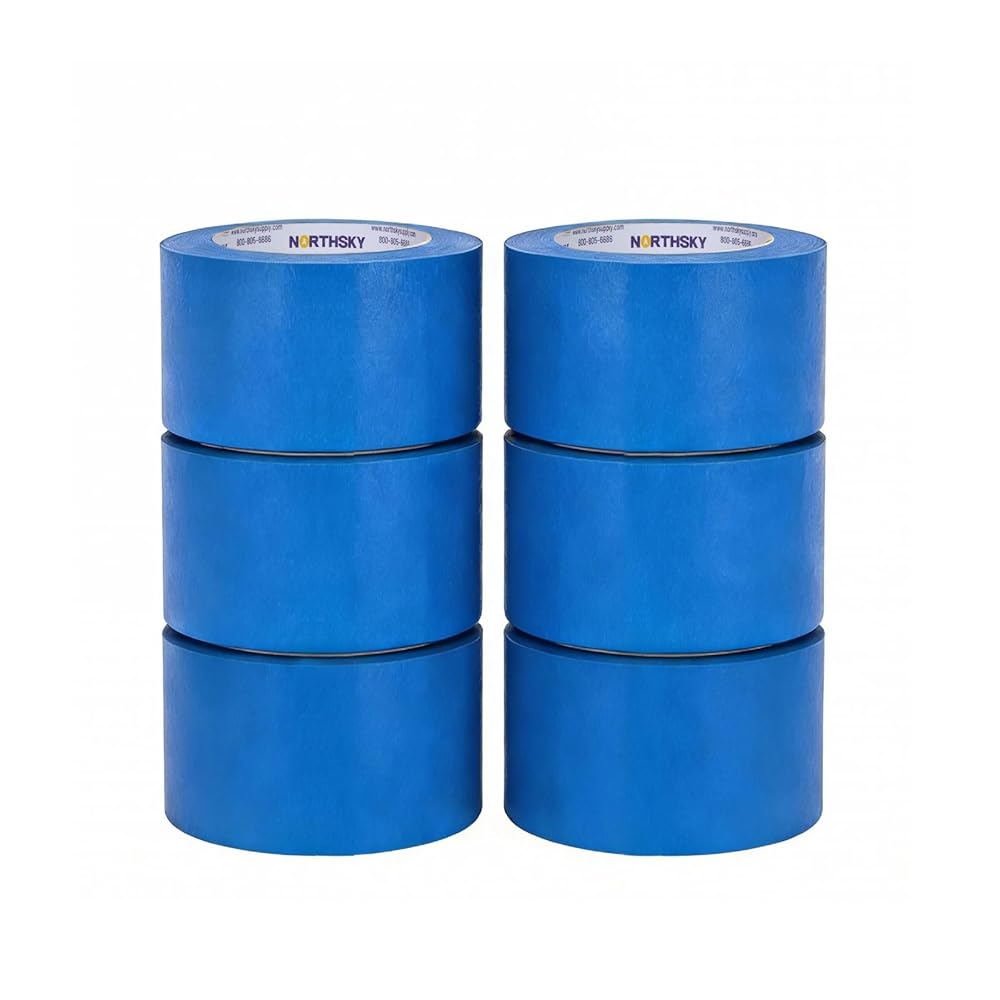 Professional Painter's Tape: Made of eco-friendly blue crepe paper, it adheres firmly without lifting or curling. Resistant to sunlight, heat, and moisture, suitable for both indoor and outdoor use.