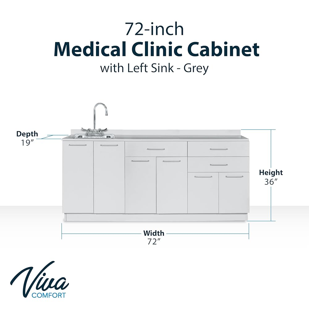 Vivacomfort 72 Inch Base Cabinet with Left Sink – Grey