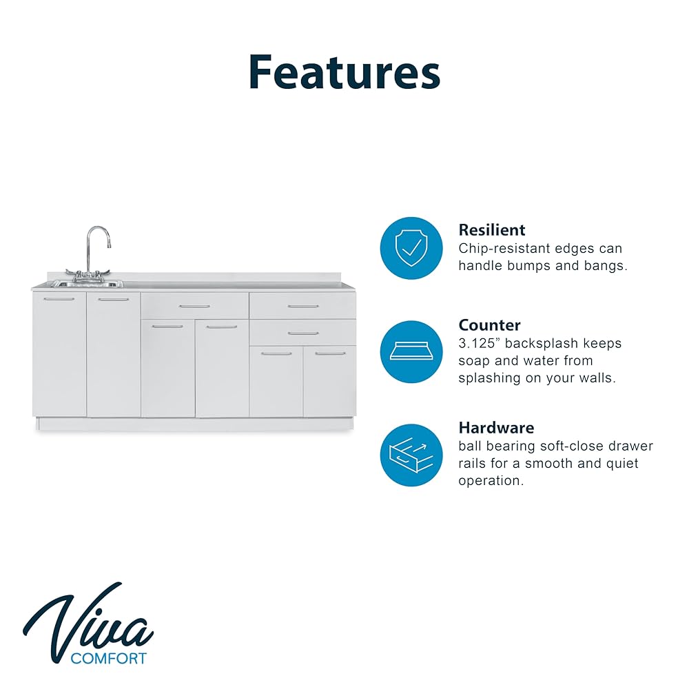 WALL-PROTECTING BACKSPLASH – The built-in 3.1-inch backsplash helps prevent water splashes and protects walls, keeping your medical workspace cleaner and easier to maintain.