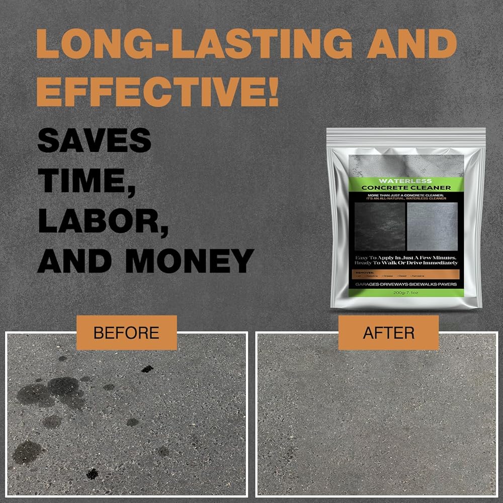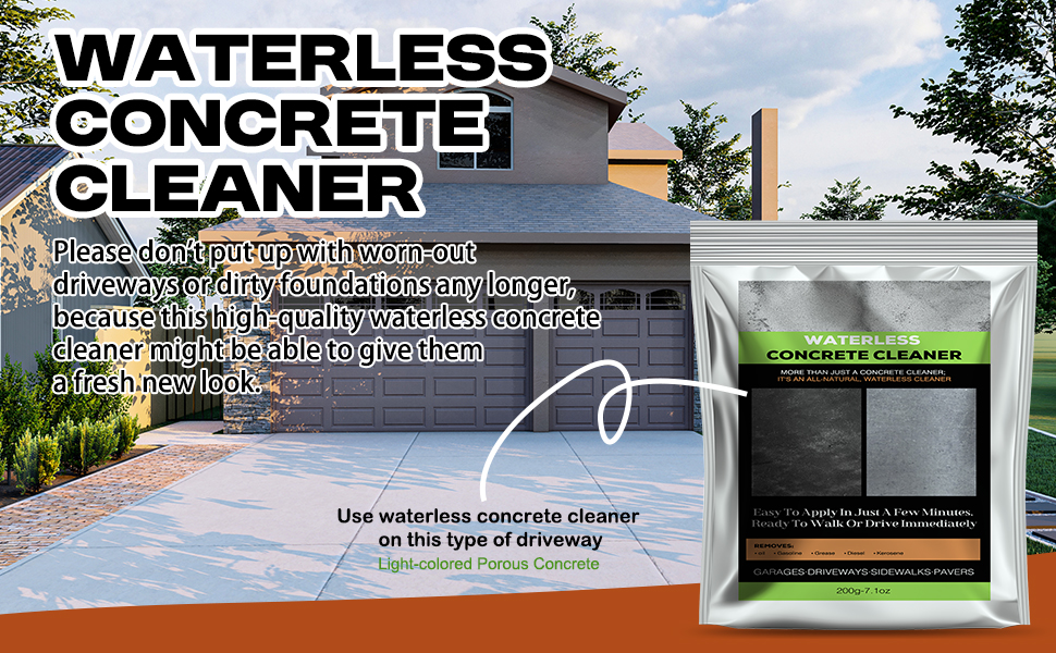 EASY TO USE: Scrub the stain with a wire brush to loosen the oil residue. Sprinkle the waterless concrete cleaner on the area that needs cleaning the most. Use a brush to apply the waterless concrete cleaner over a larger area to ensure even cleaning. Leave it and let the waterless concrete cleaner do its job. For stubborn stains, repeat this process weekly for several weeks.