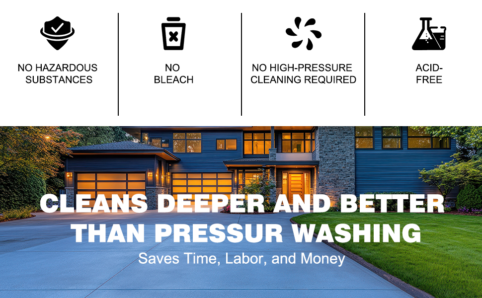 SIMPLE AND SAFE: Unlike other cleaners that use harmful chemicals to remove stubborn oil stains and grease, the Waterless Concrete Cleaner addresses these issues safely and conveniently. While it is highly effective at removing stubborn stains from concrete, Waterless concrete cleaner contains no bleach, acids, or other potentially hazardous substances.